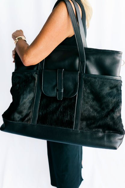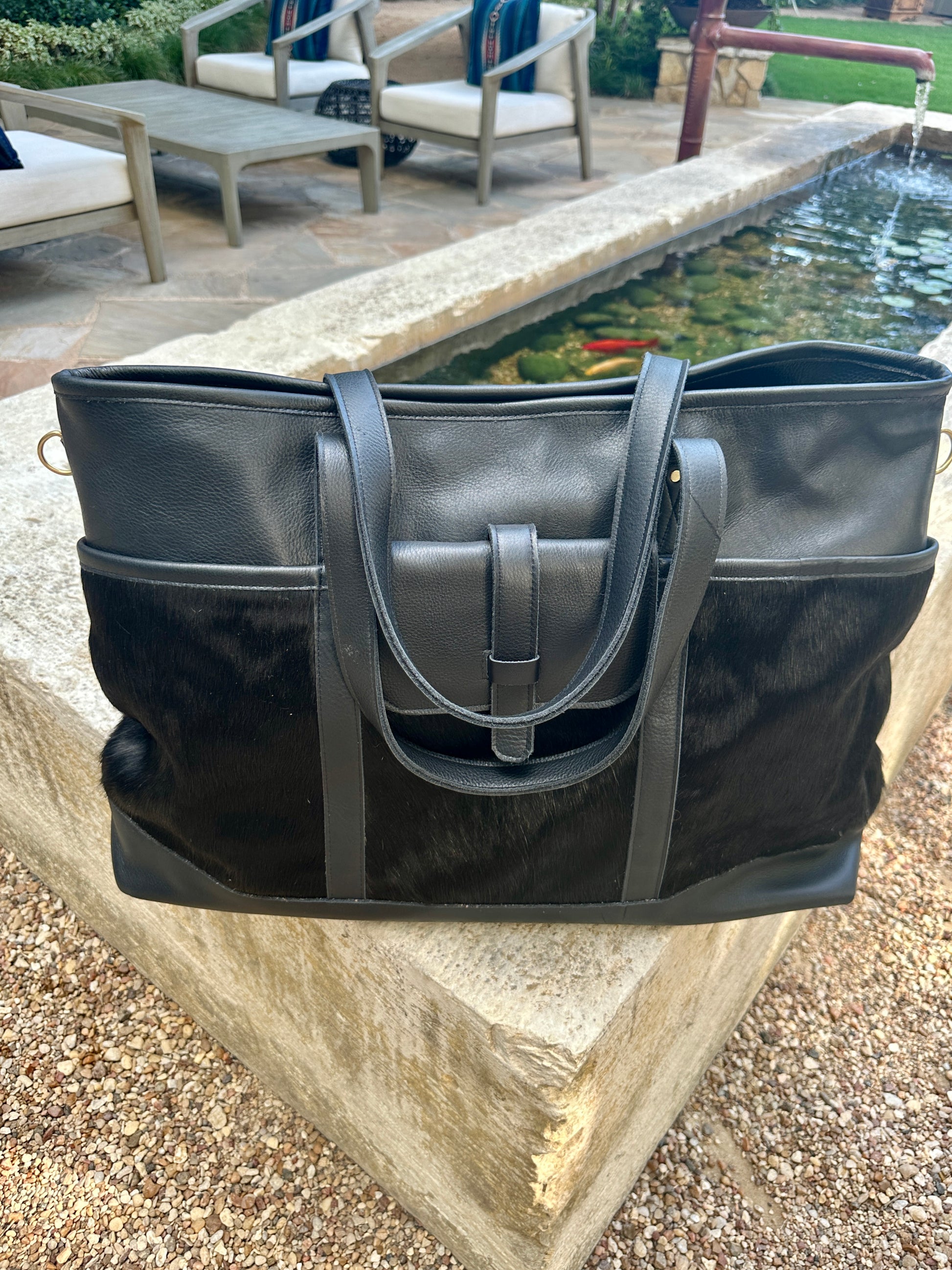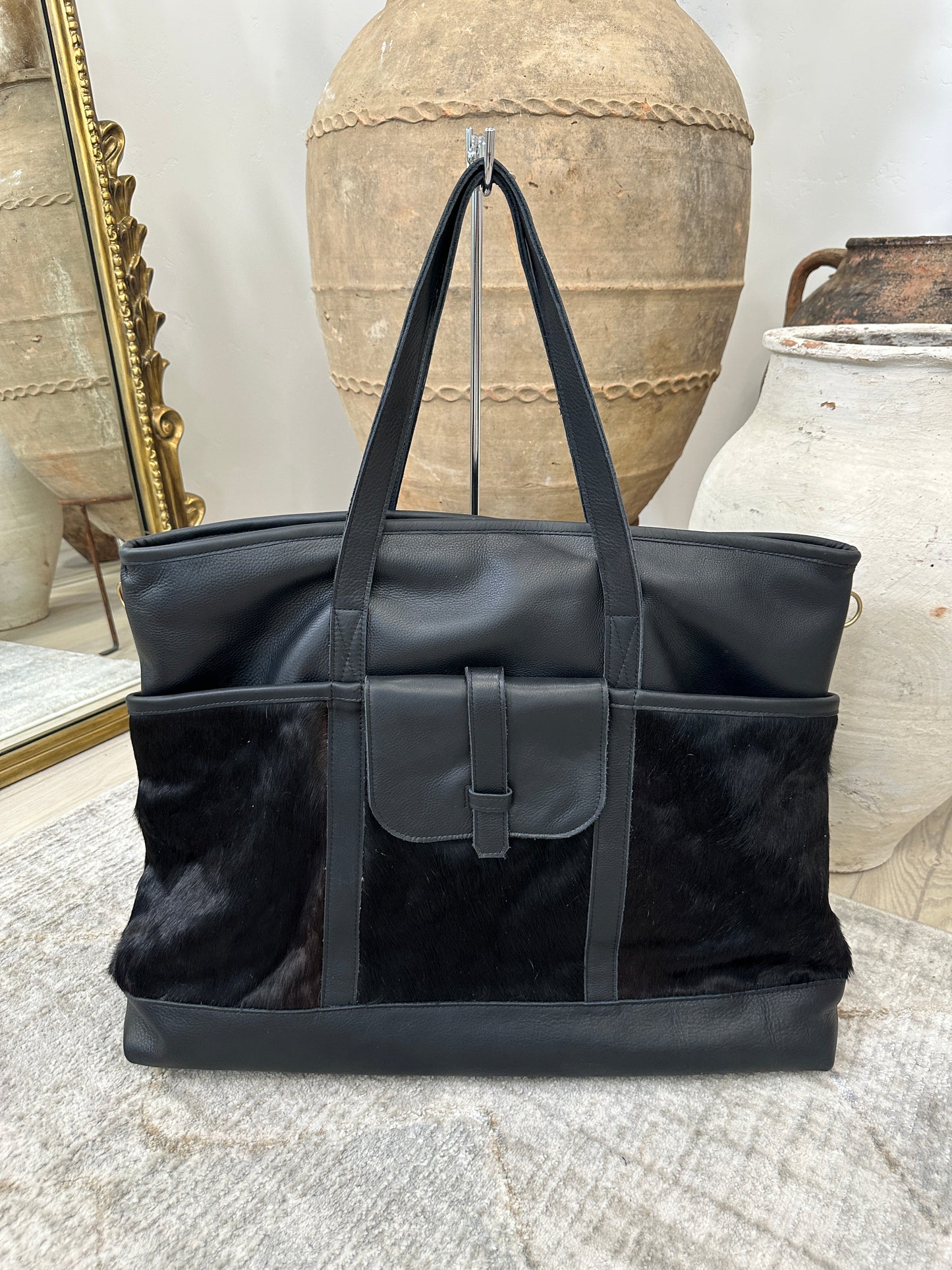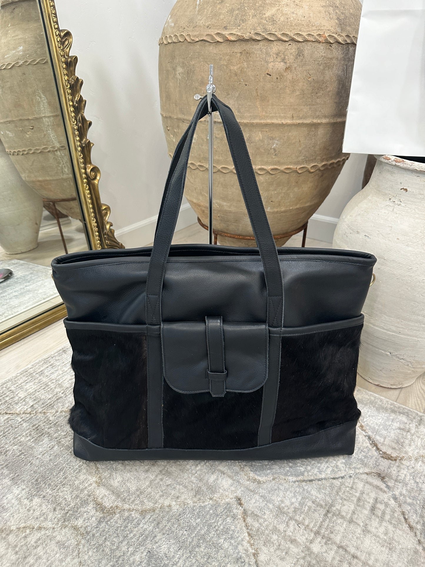 EXCLUSIVE!! Leather and Cowhide Travel Bag in Black