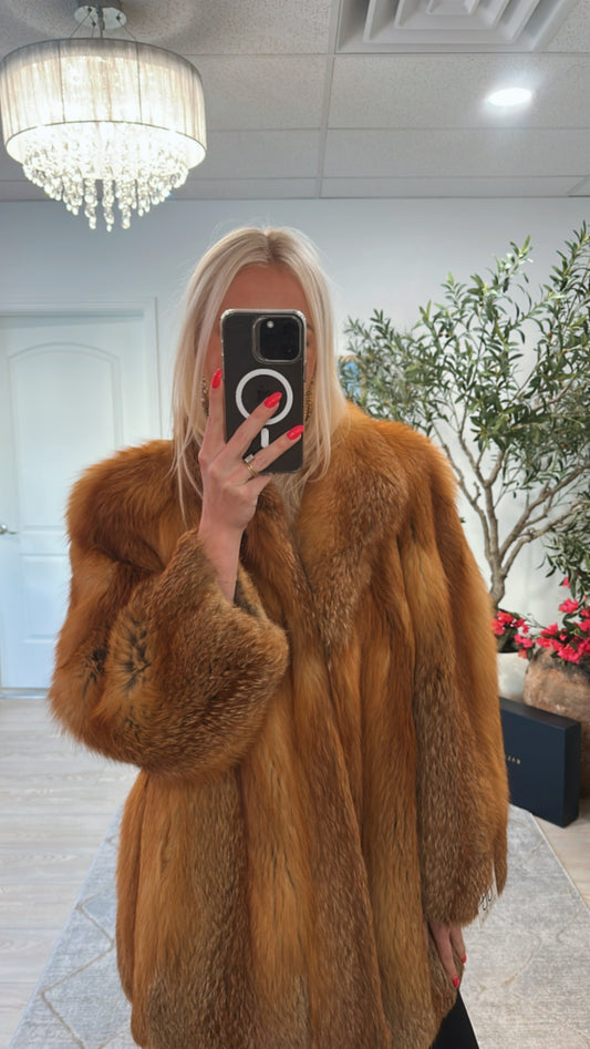 #152 Vintage Dyed Fox Fur Jacket - Size Large