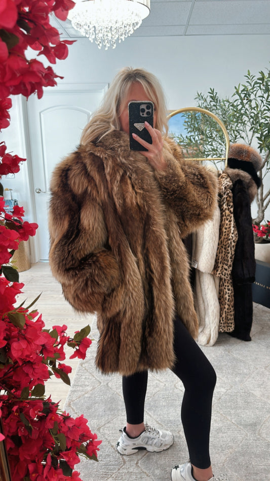 #44 Vintage Dyed Brown Cropped Fox Fur Jacket
