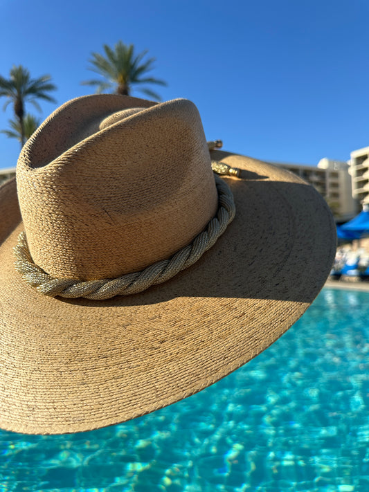 AS SEEN ON ASHLEE NICHOLS, MAGEN REAVES & MORE!! The Riviera Rope Embellished Pressed Palm Straw Hat