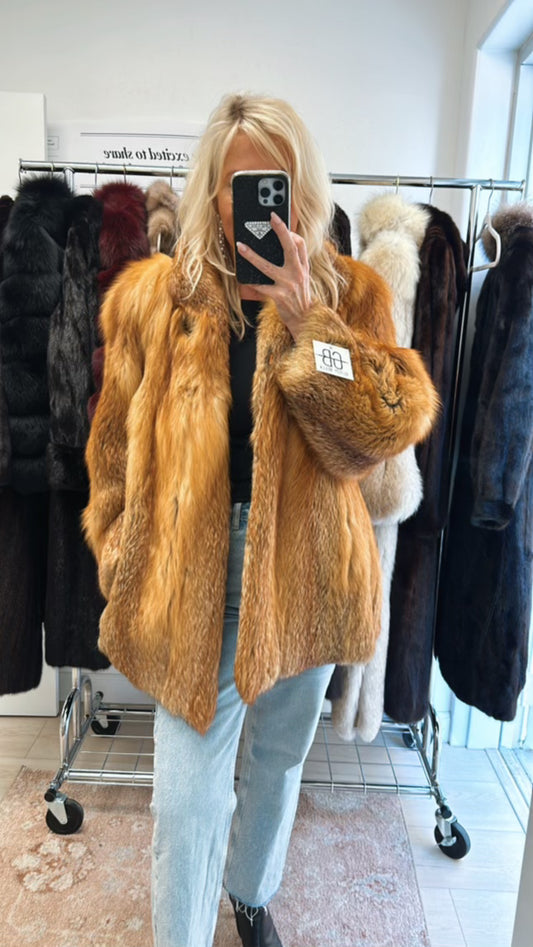 #155 Vintage Dyed Fox Fur Jacket - Size Small