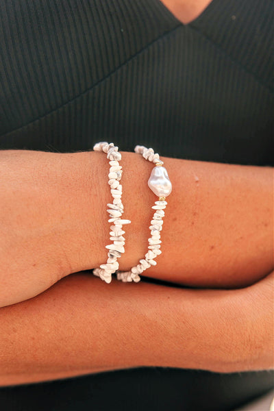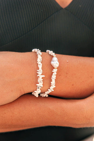 NEW!! Stone & Pearl Bracelet in White