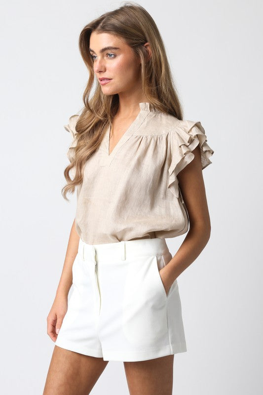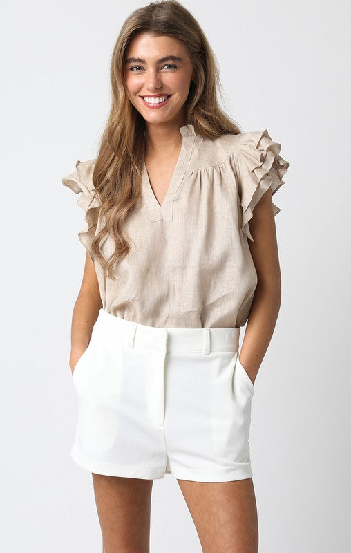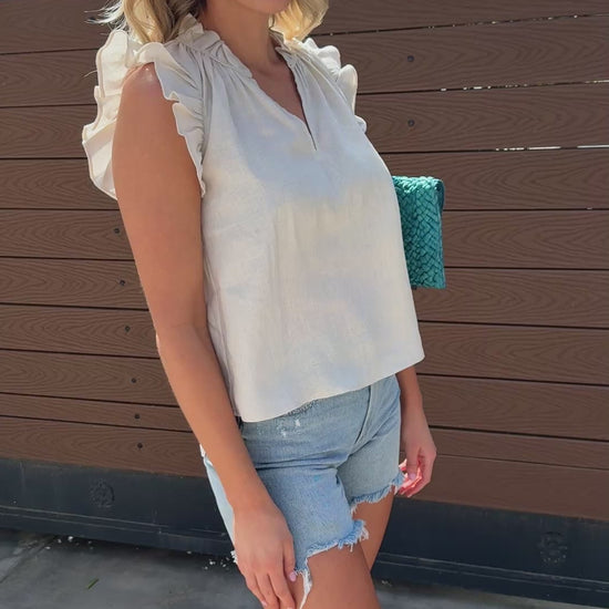 The Poppy Blouse epitomizes casual chic with its light blue hue and breezy, flowy silhouette. Featuring flutter sleeves and short sleeves, it effortlessly combines comfort and style. Whether paired with jeans for a relaxed outing or dressed up with trousers for a more polished ensemble, this blouse exudes casual chic. Available in 4 colors!