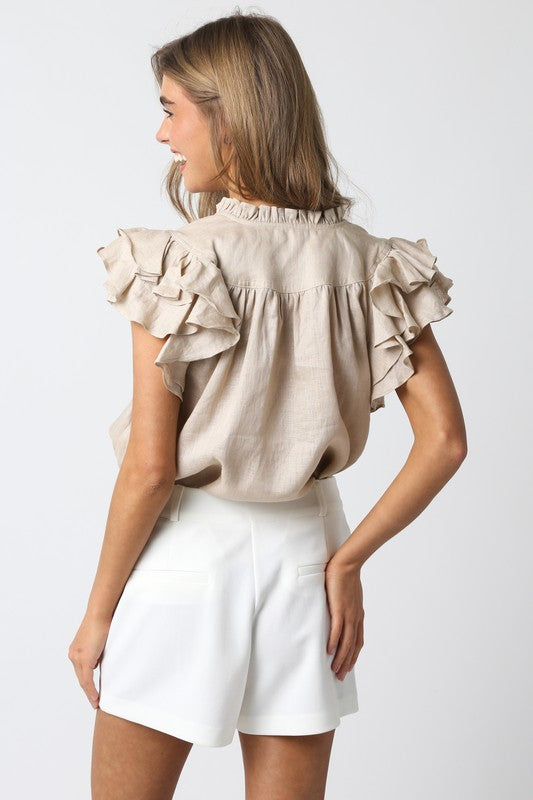 FINAL SALE!! Poppy Linen Blouse in Tan
