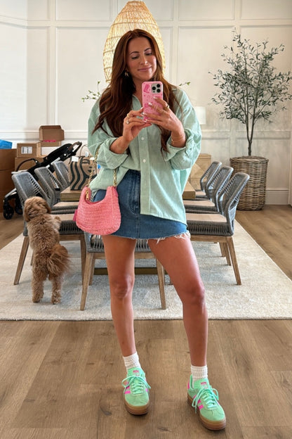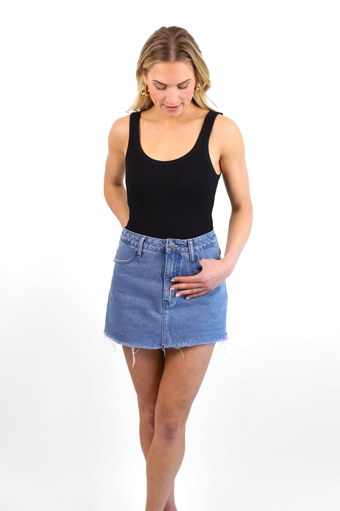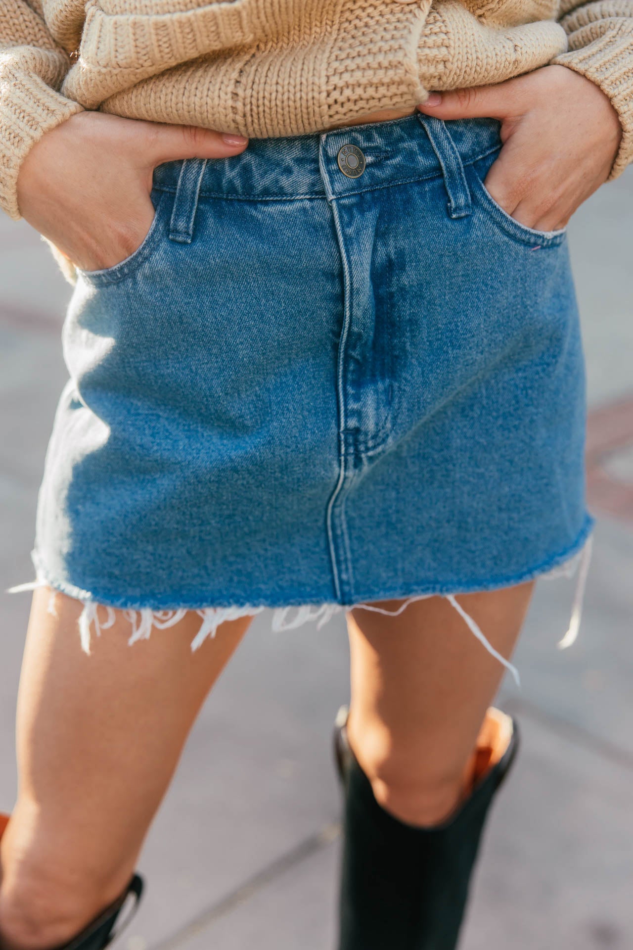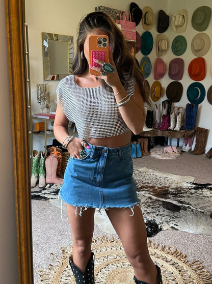 Denim days are now complete with this skort! Girly in the front, sporty in the back - this is the best of both worlds. The happy medium between a classic denim skirt and your favorite pair of cutoff shorts, you can dress these up or down!