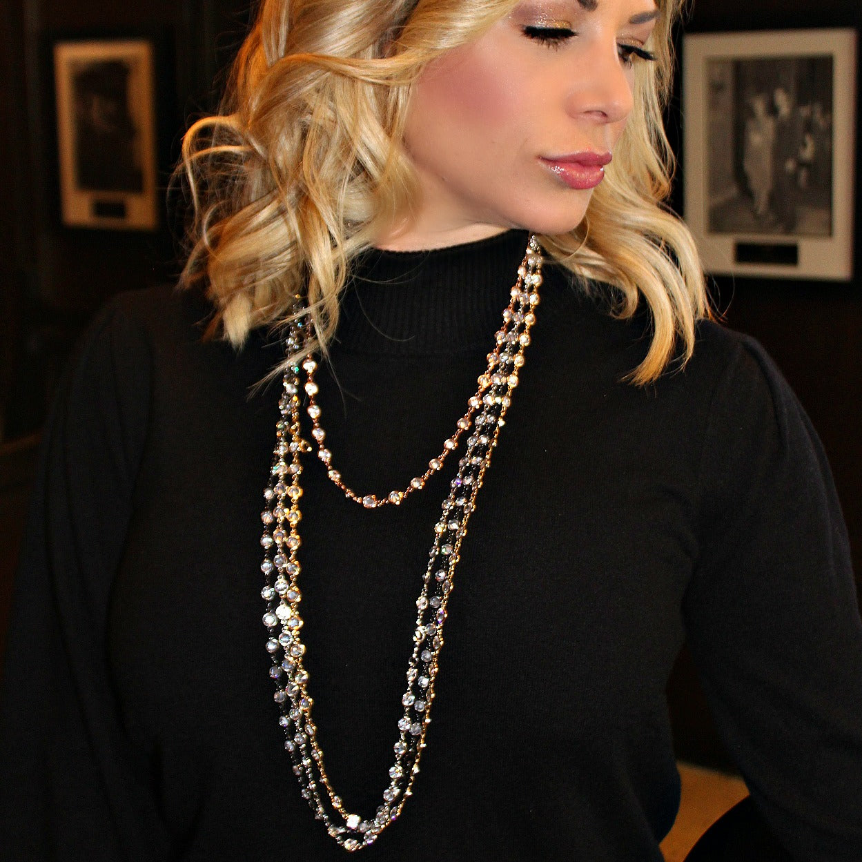 Alexis wanted us to help her design a necklace that had a chic look with a modern flair. She wanted a necklace that could be worn alone and that added just the right amount of sparkle! Or one that can be wrapped and layered for a night on the town...needless to say we accomplished that and are thrilled with this gorgeous piece.