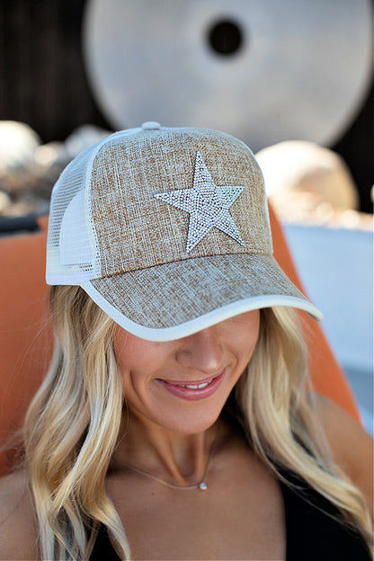 Linen Star Baseball Hat in Light Natural