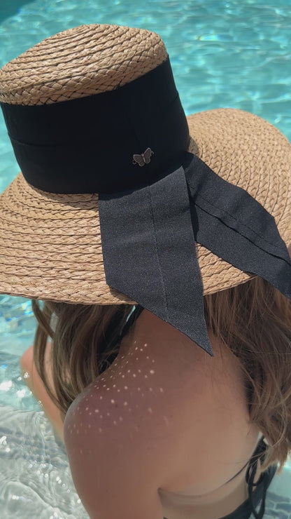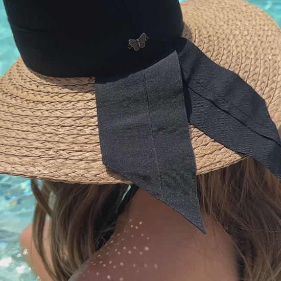 An elegant broad-brim sun hat is handwoven from airy, lightweight straw for a look that's both graceful and chic.  Crystallized by hand with a single Swarovski crystal on the back!