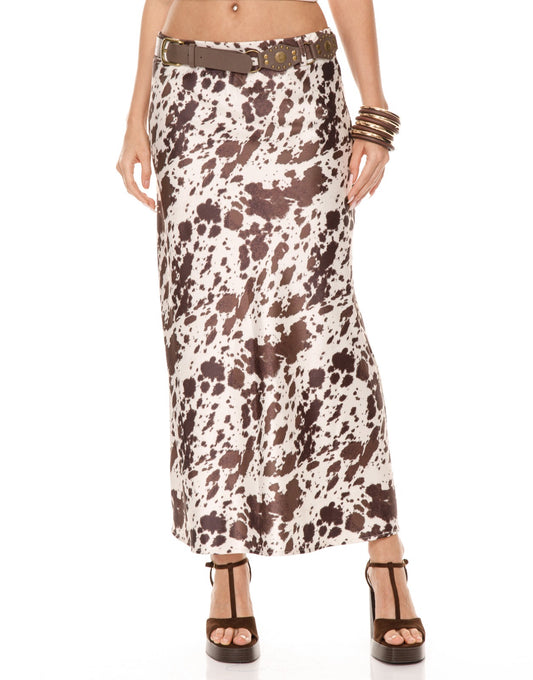 NEW!! The Dallas Cow Print Satin Maxi Skirt