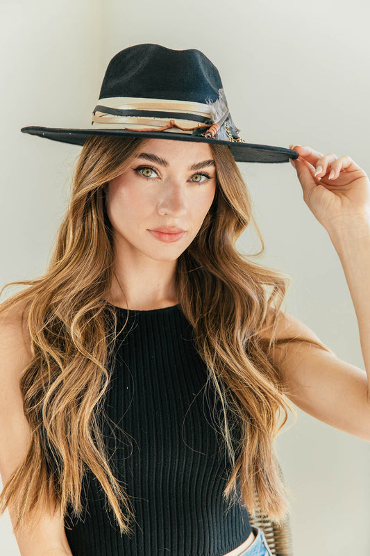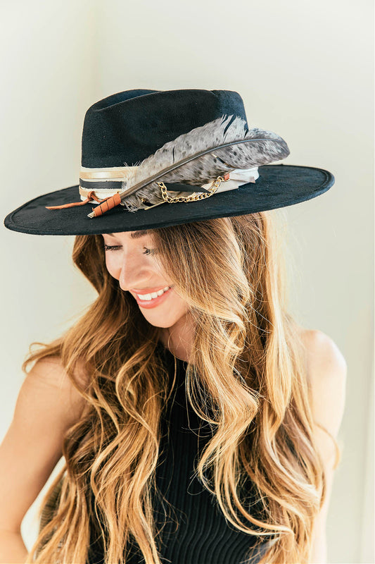 The “Beth Dutton” Chain Banded Suede Hat in Black