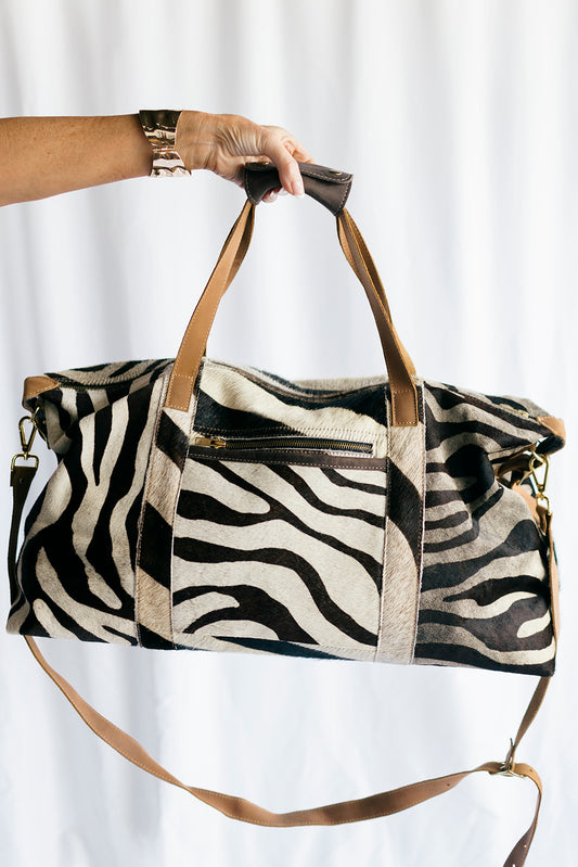 EXCLUSIVE!! Leather and Cowhide Travel Bag in Tri Color