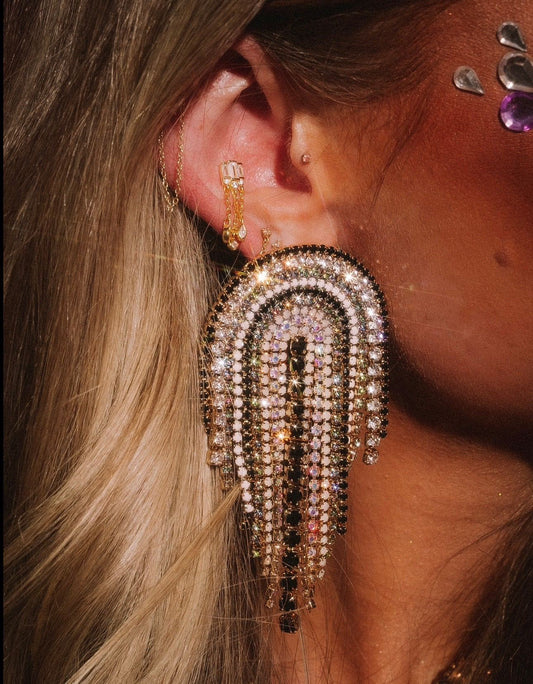 AS SEEN ON LAINEY WILSON!! Champagne & Black Crystal Jumbo Rainbow Earrings