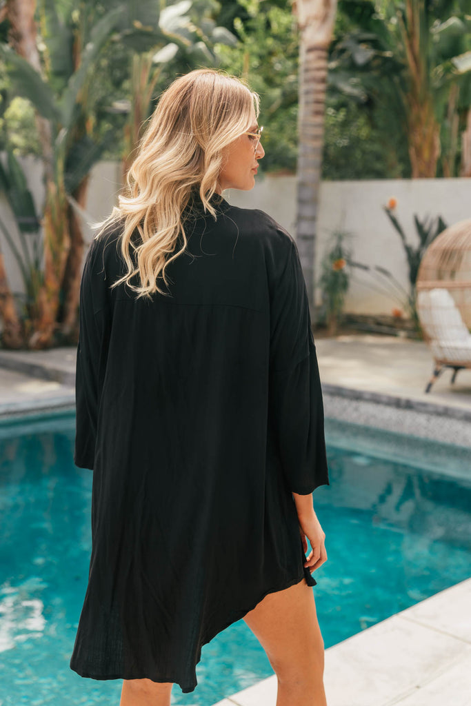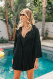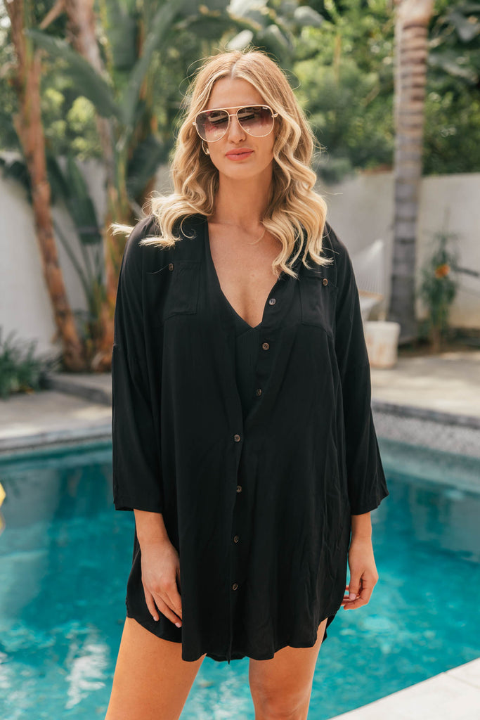 You'll look and feel fabulous in our Paradise Cover Up in Black! Lightweight and breezy fabric shapes this shirt dress-inspired swim cover-up that has a collared neckline, a button-up bodice, a relaxed silhouette.