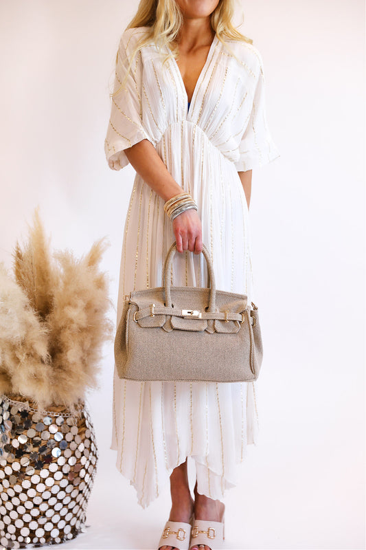 FINAL SALE!! Sleeveless Draped Gold Accent Midi Dress