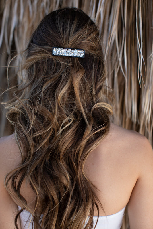 A sparkling clip radiating with crystals makes a beautiful accent to any outfit and a treasured piece!