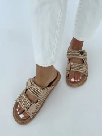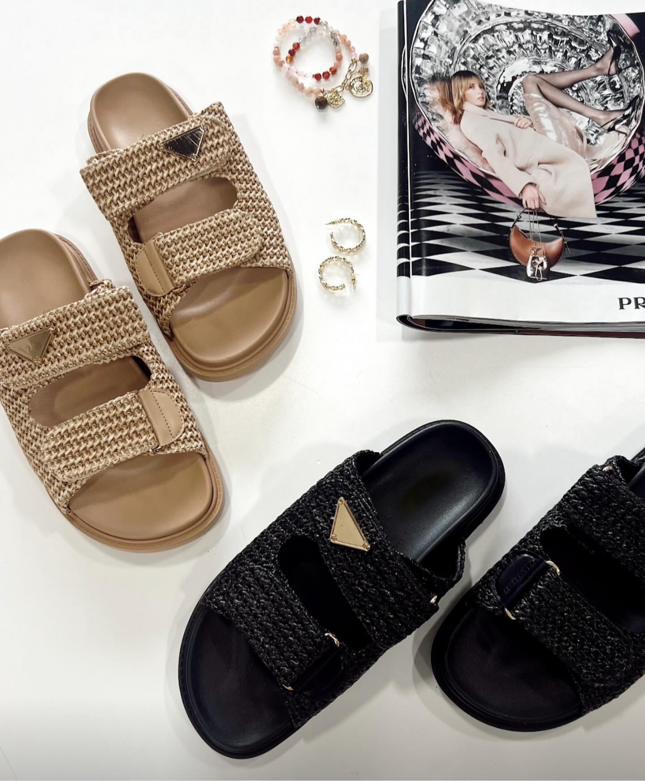You'll LOVE the Tuscany Raffia slide! Don't pay $1,300 when ours is just as cute! Made of faux raffia and faux leather details, it's one the most comfortable shoes we've found. Style with denim, yogas or your favorite dress for spring/summer! Available in 3 Colors!