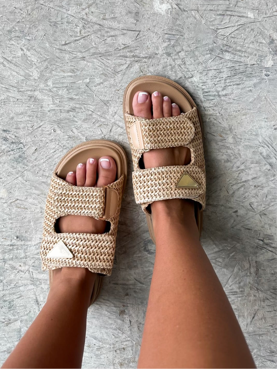 FINAL SALE!! The Tuscany Raffia Slide in Nude