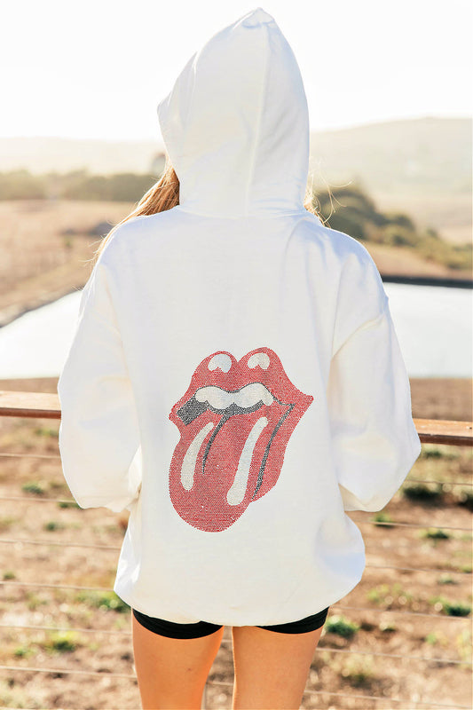 BEST SELLER!! Crystal Drawstring Sweatshirt w/ Rhinestone Lips in 2 Colors!