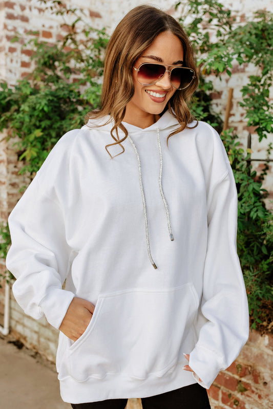 BEST SELLER!! Crystal Drawstring Sweatshirt in White