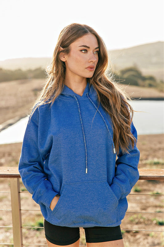 BEST SELLER!! Crystal Drawstring Sweatshirt in Heathered Navy
