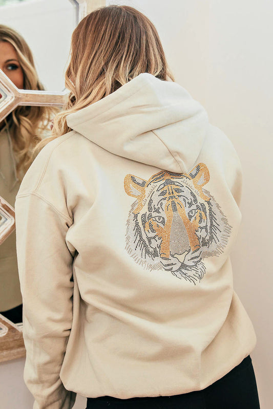 BEST SELLER!! Crystal Drawstring Sweatshirt w/ Tiger in Tan