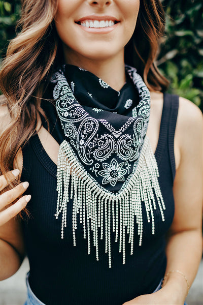 AS SEEN ON ASHLEE NICHOLS!! Crystal Fringe Bandana in Black/Brown