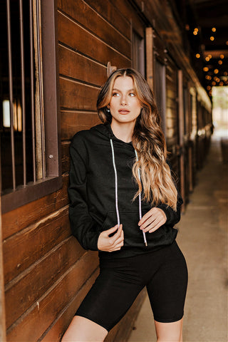 BEST SELLER!! Crystal Drawstring Sweatshirt in Black
