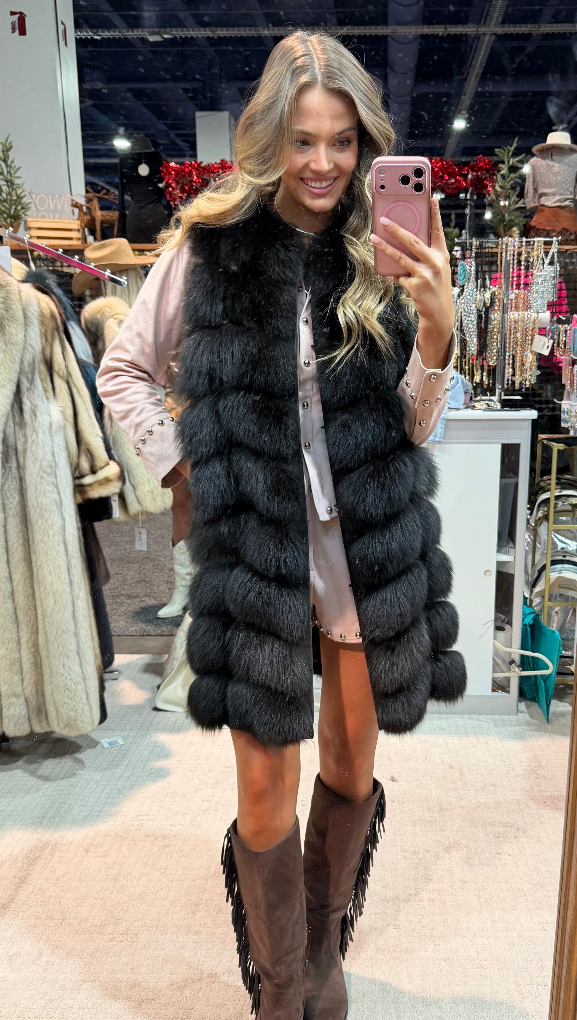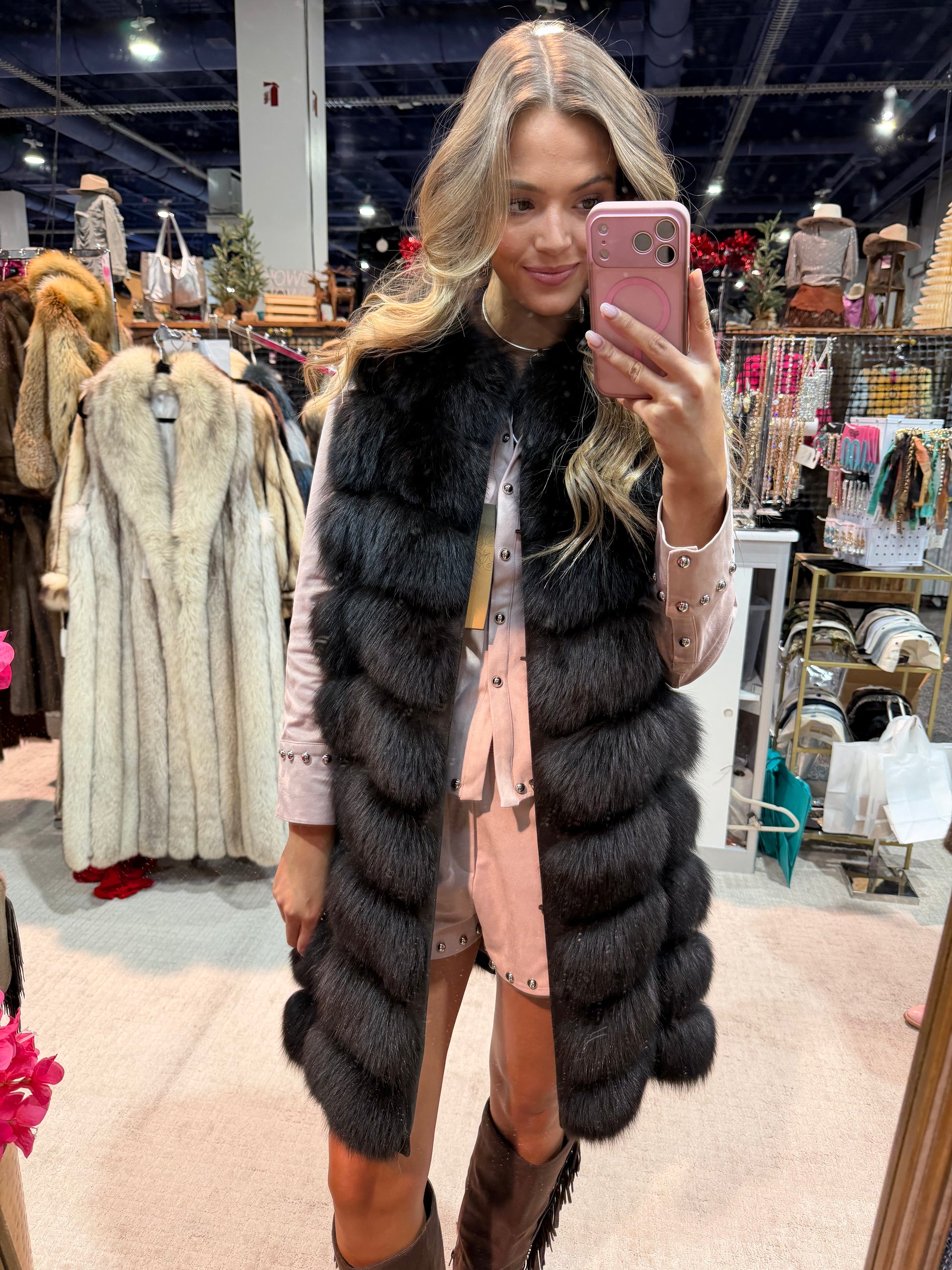 #156 Vintage Dyed Black Fox Vest Size Medium
