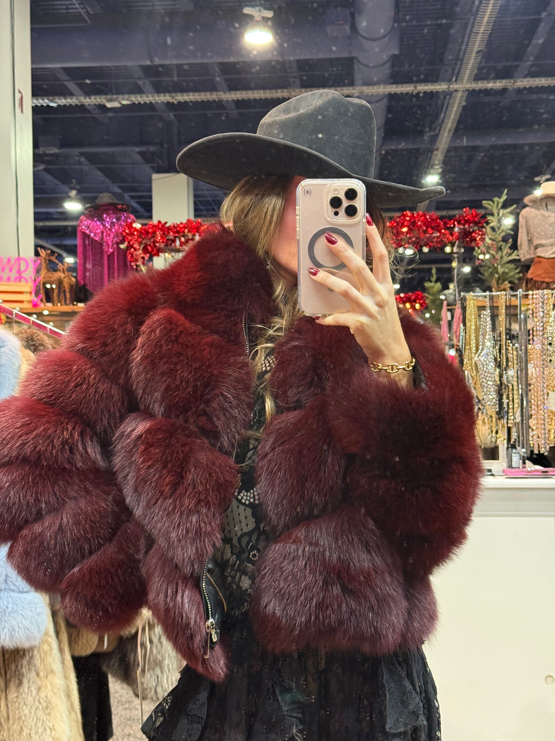 This vintage burgundy fox jacket is soft, supple, and well-cared for by its previous owner. It has been stored in cold storage, ensuring its longevity for many years to come. A piece to pass down to future generations!
