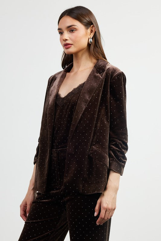 FINAL SALE!! After Party Rhinestone Velvet Blazer in Brown