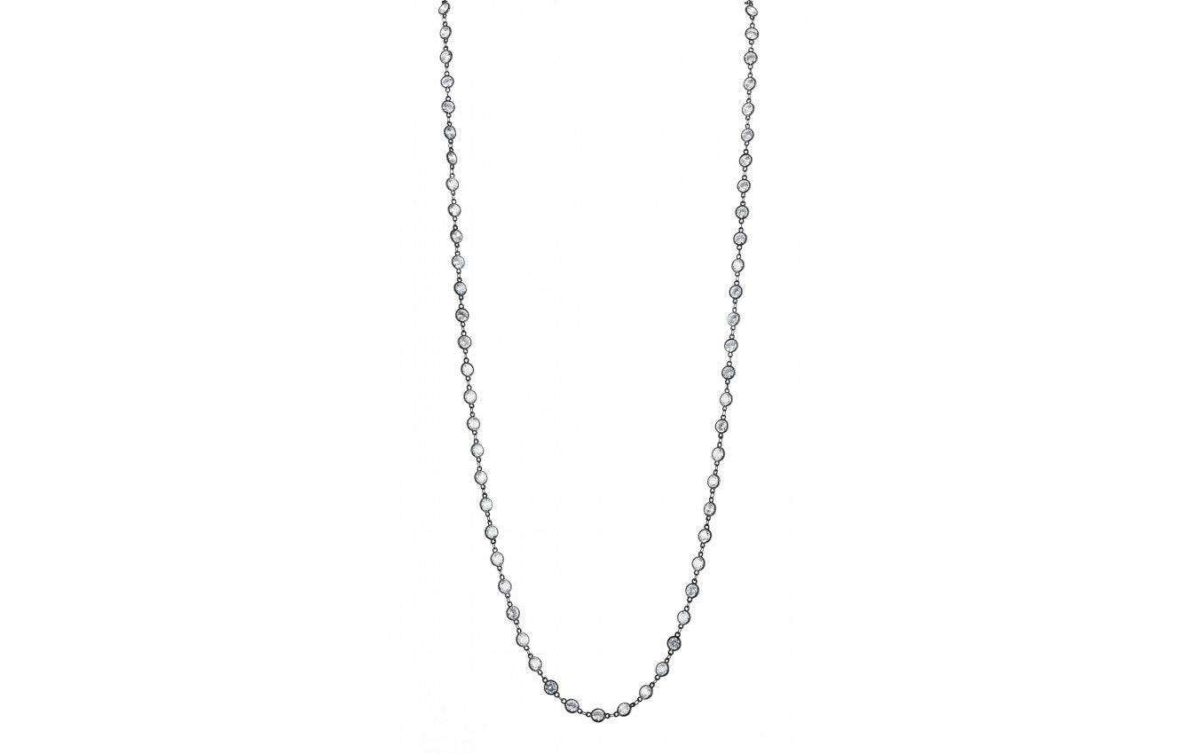 This delicate necklace is handcrafted with 68 of the most brilliant Swarovski crystals on a 36" chain encircling your neck. This unique combination results in a design with high shine and elegant luster. Shine bright in this classic piece, a versatile necklace that can be worn long, wrapped or layered and makes the perfect gift!