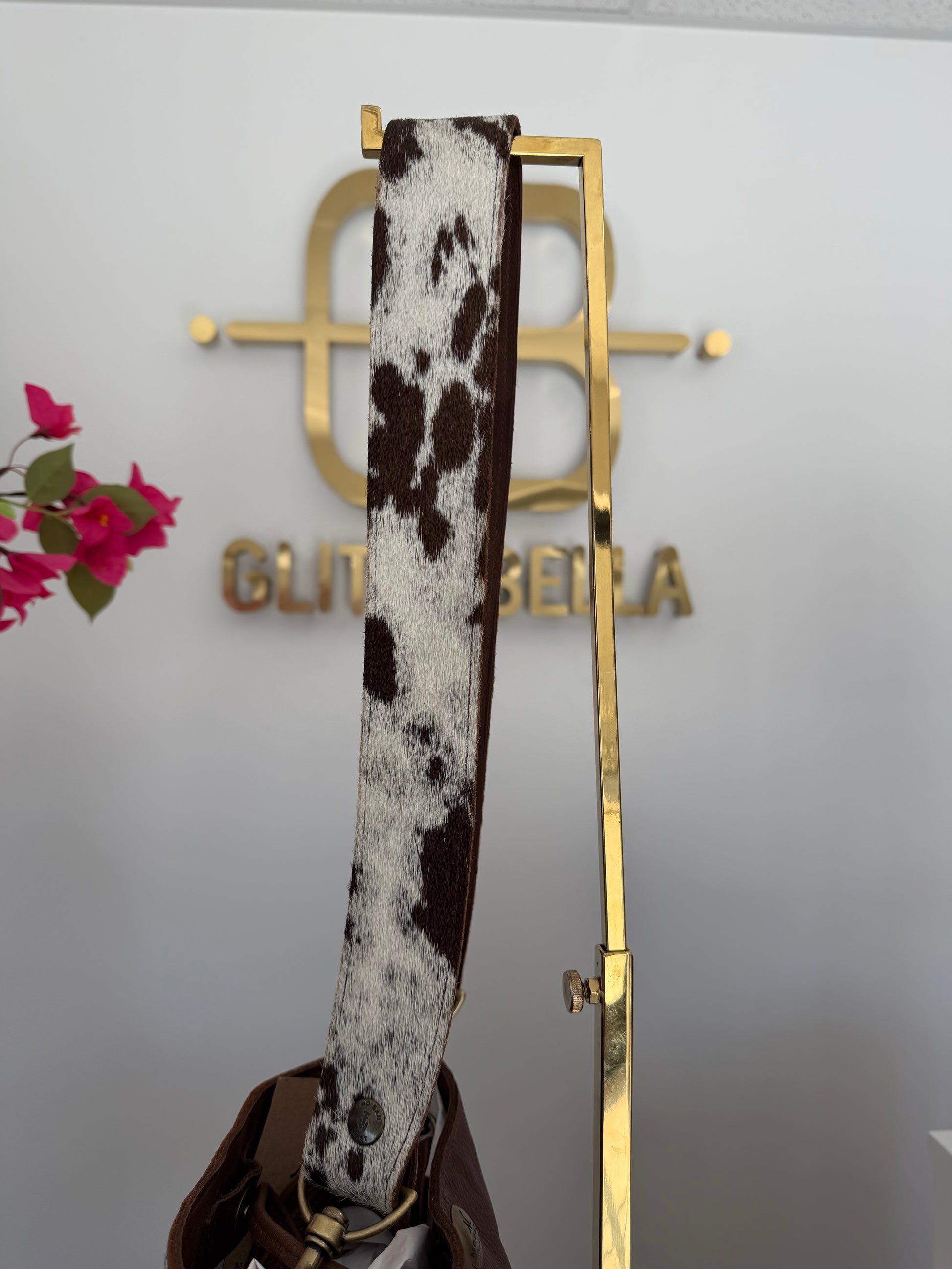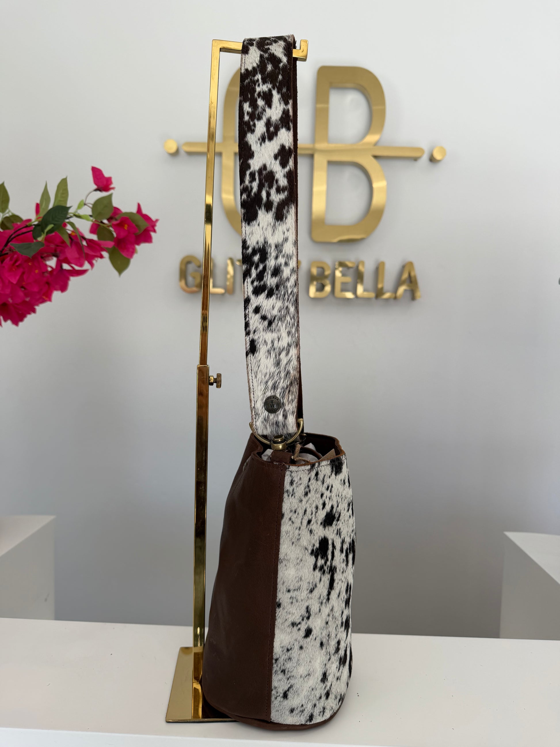 Black and White Cowhide Large Bucket Bag w/ Cowhide Strap