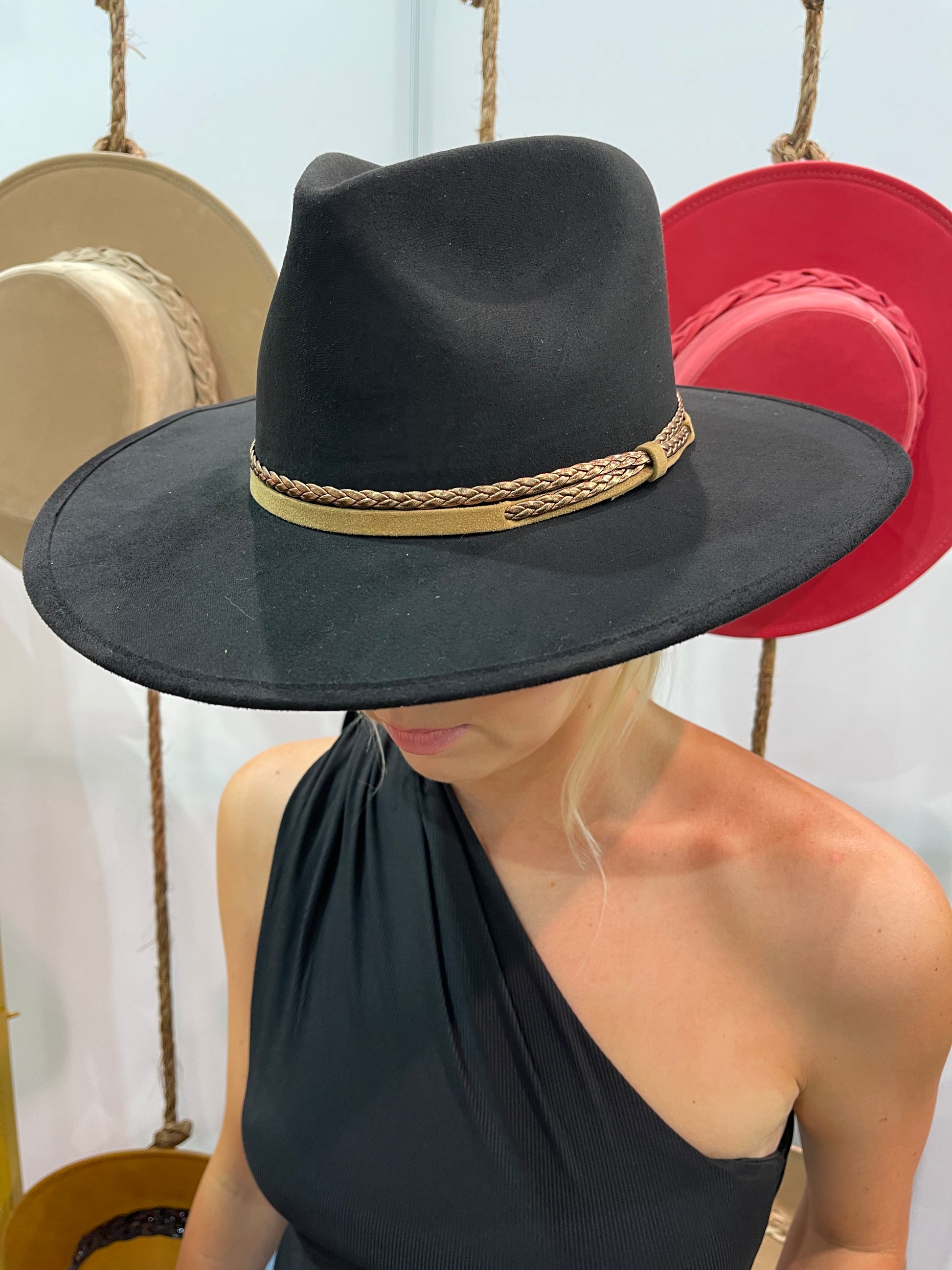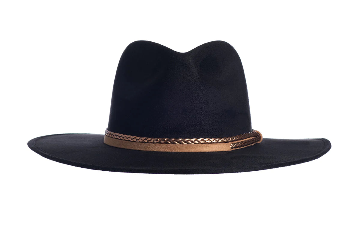 Ok, we're freaking out! The Joshua Hat is our newest favvvvv. It's everything a girl could dream of in a hat. Incredible quality, a pointed rancher crown, super structured, and an elastic inner-band. Black is always in style and you'll be in love.