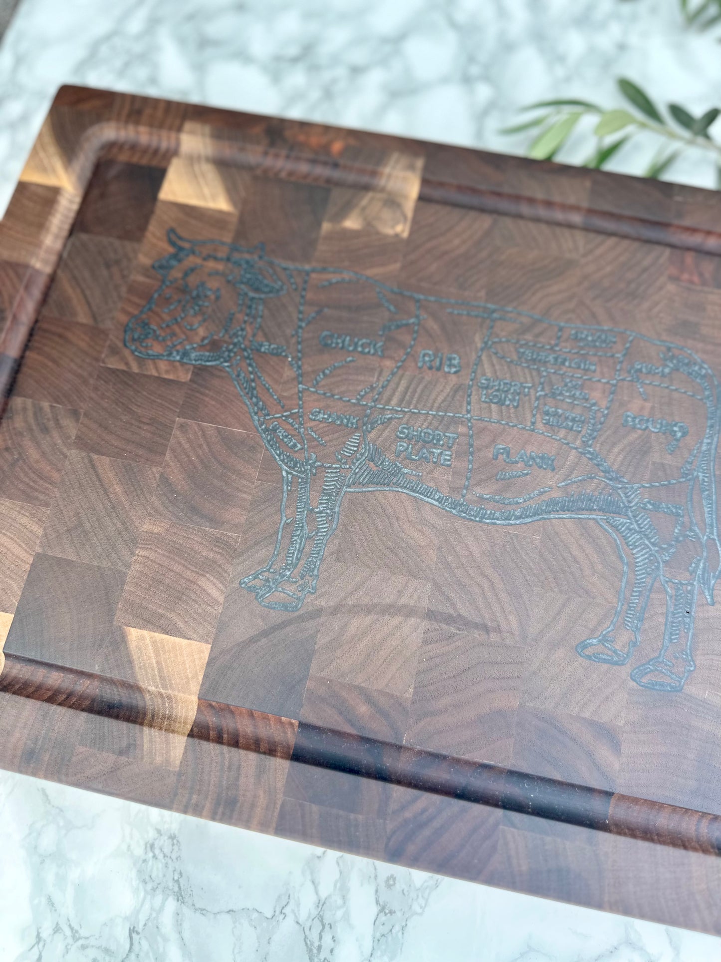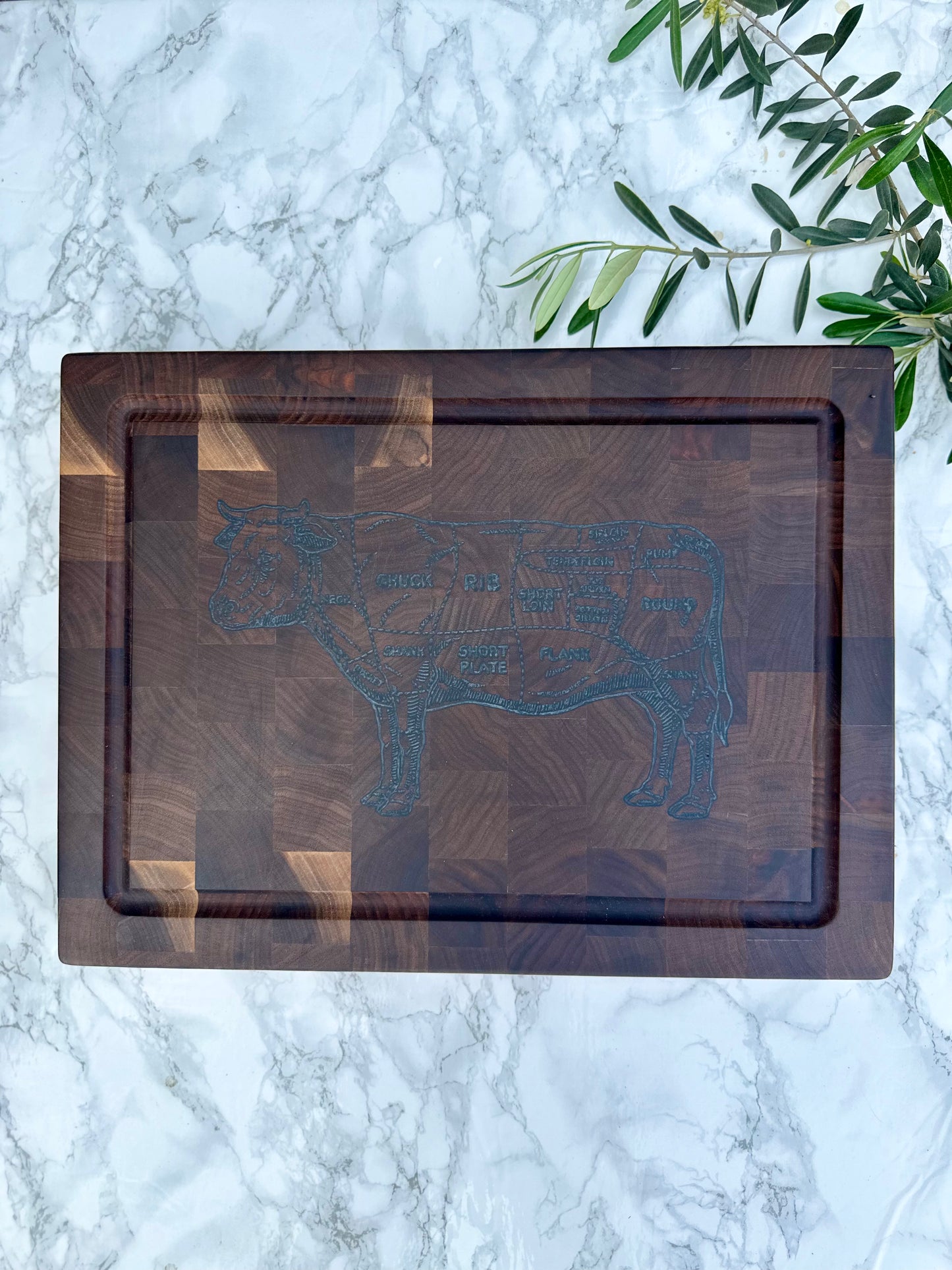 IN STOCK!! "BEEF BUTCHER CHART" End-Grain Cutting Board in Black Walnut