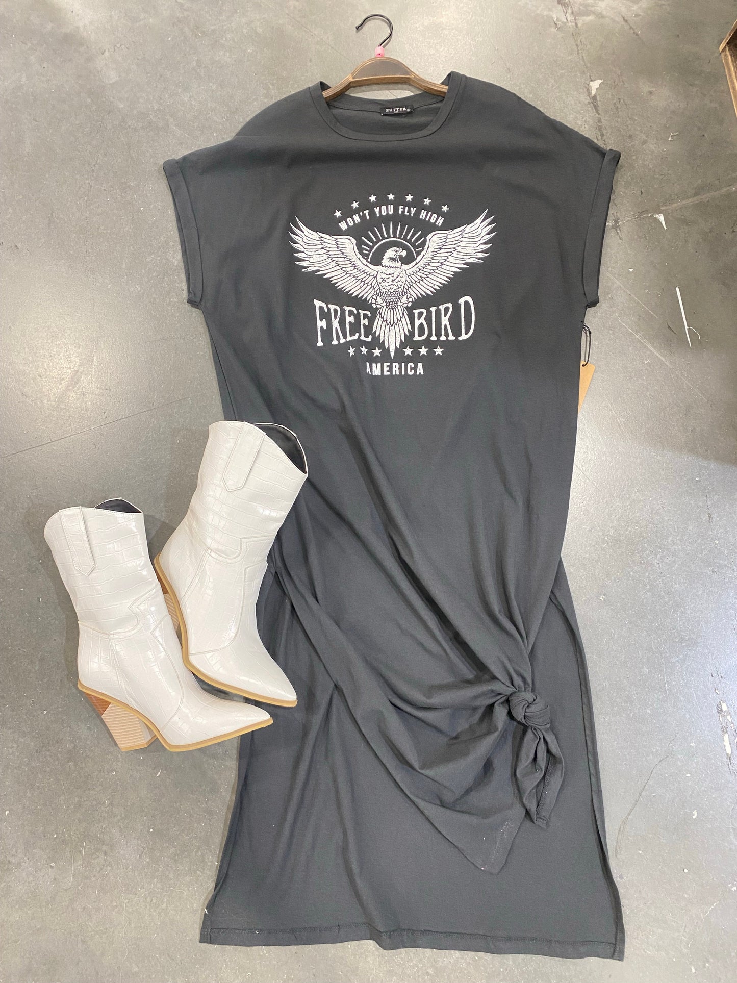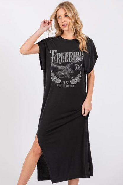 FINAL SALE!! “Freebird Eagle” Graphic T-Shirt Dress in Washed Black