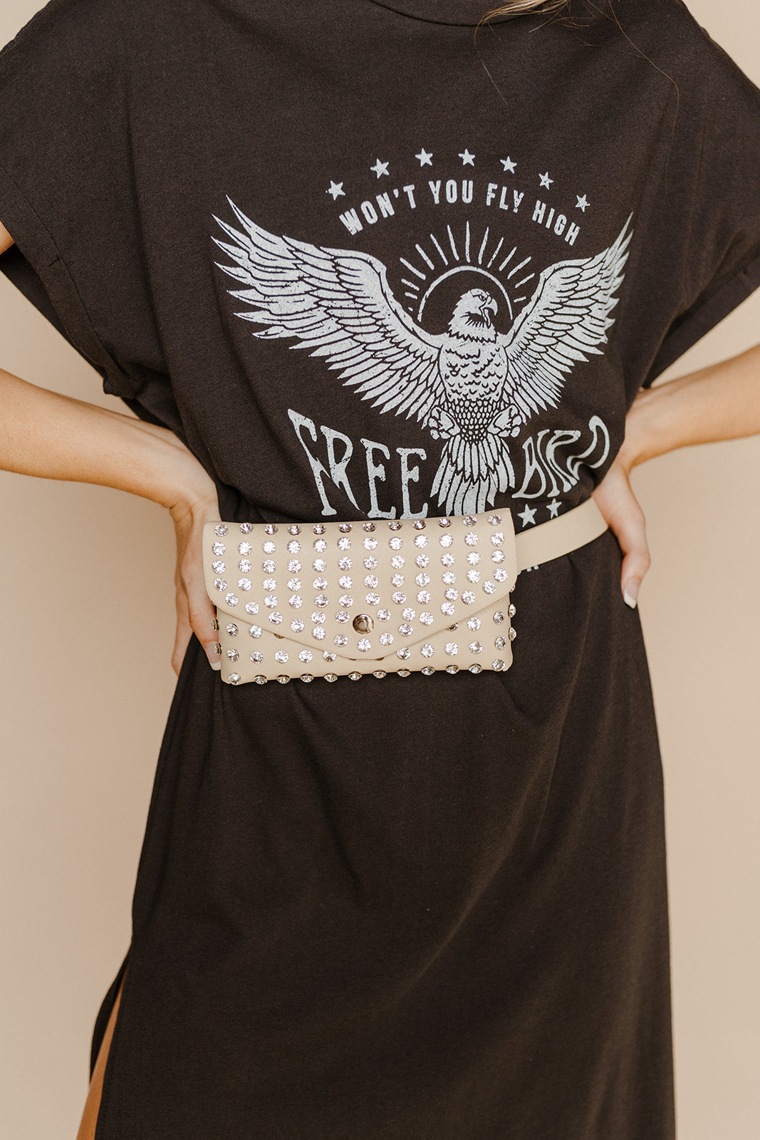 We’ve got the cutest graphic t-shirt dress that you absolutely need for this spring! So cute styled with sandals, sneakers, cowboy boots, everything! We can’t decide what we love the most: the graphic, the comfortable gooey material, or the trendy midi length! Perfect as a bathing suit cover up, by itself running errands, tied in a knot at the bottom, or worn full length!