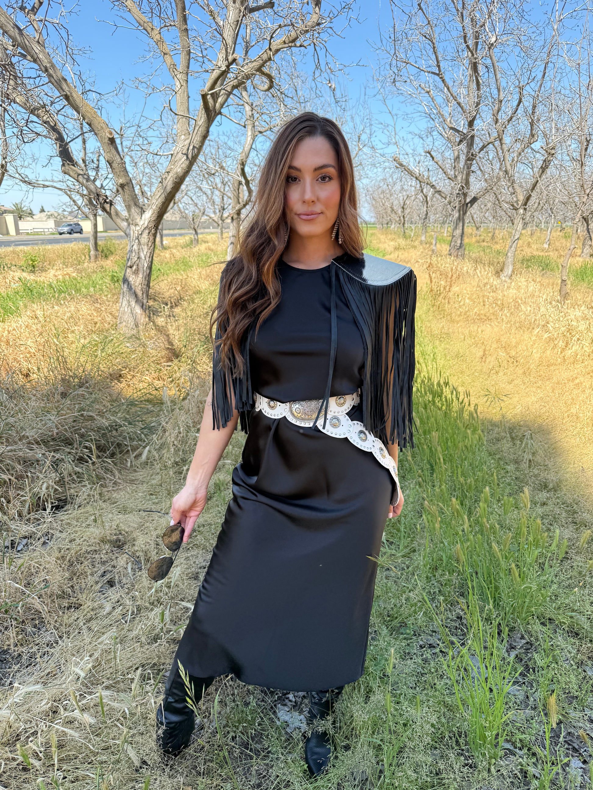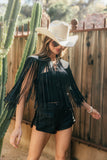 BEST SELLER!! Cowhide Fringe Shawl in Black