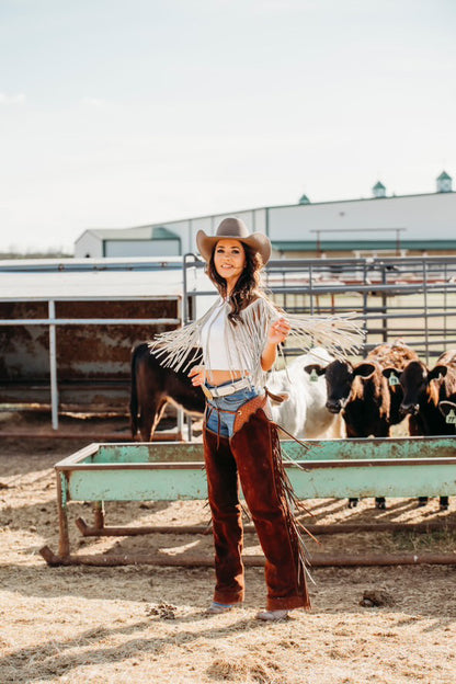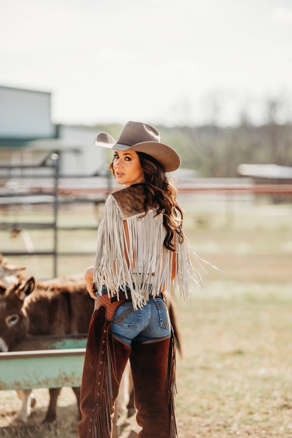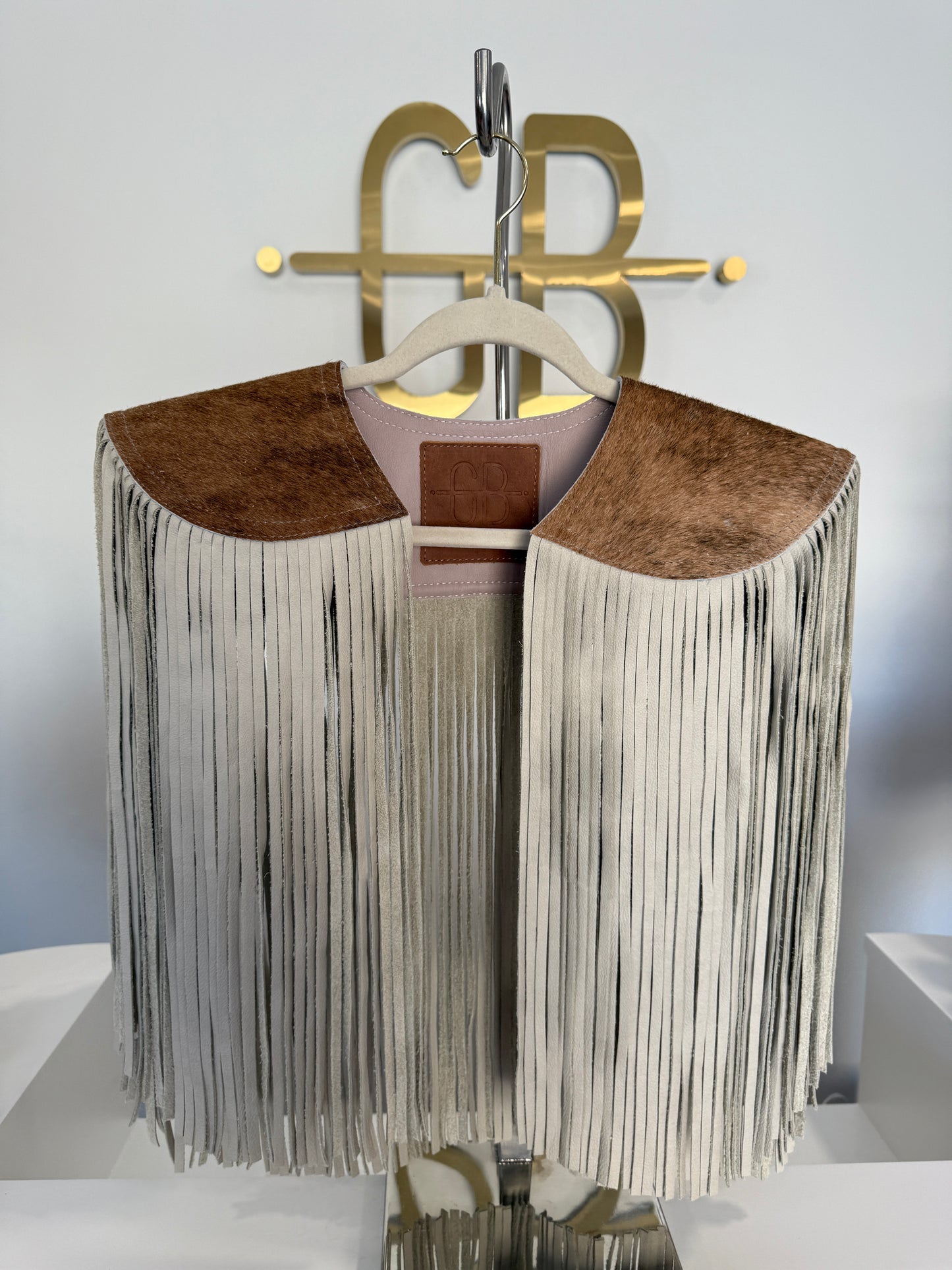 Get ready to make a statement in our new Cowhide Fringe Shawl, available in 3 colors! Our newest GB Original is made out of the highest quality Brazilian Cowhide by hand in the USA! A piece you will keep for years and pass to the next generation. Will ship in 2 weeks!