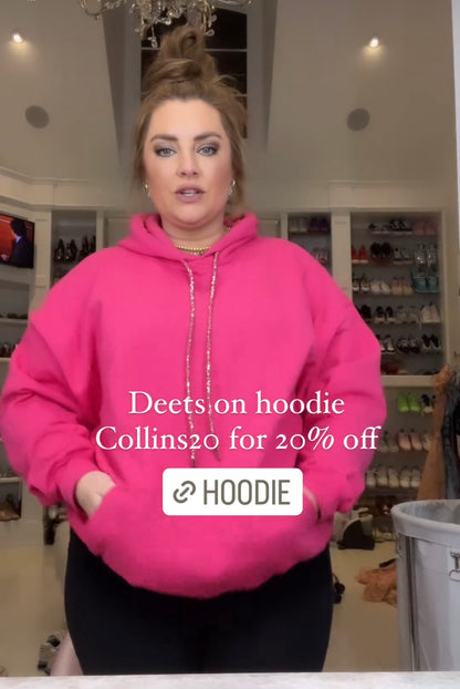 BEST SELLER!! Crystal Drawstring Sweatshirt in Hot Pink