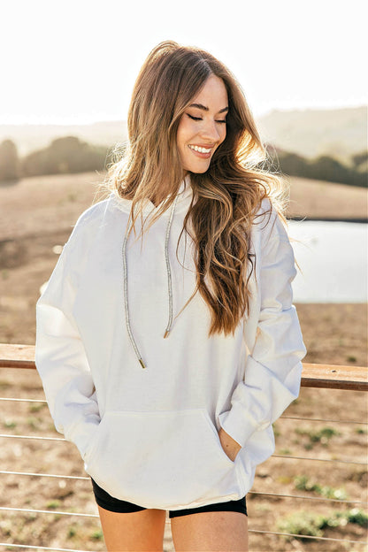 Made of 50% cotton and 50% polyester for a luxurious feel, a pouch pocket, a Austrian crystal drawstring, double stitching, double lining, and available in 5 sizes! It just hits all the notes, how cute will it be with yogas or bike shorts and will become your new bestie! The best gift, we're going to need in every color.