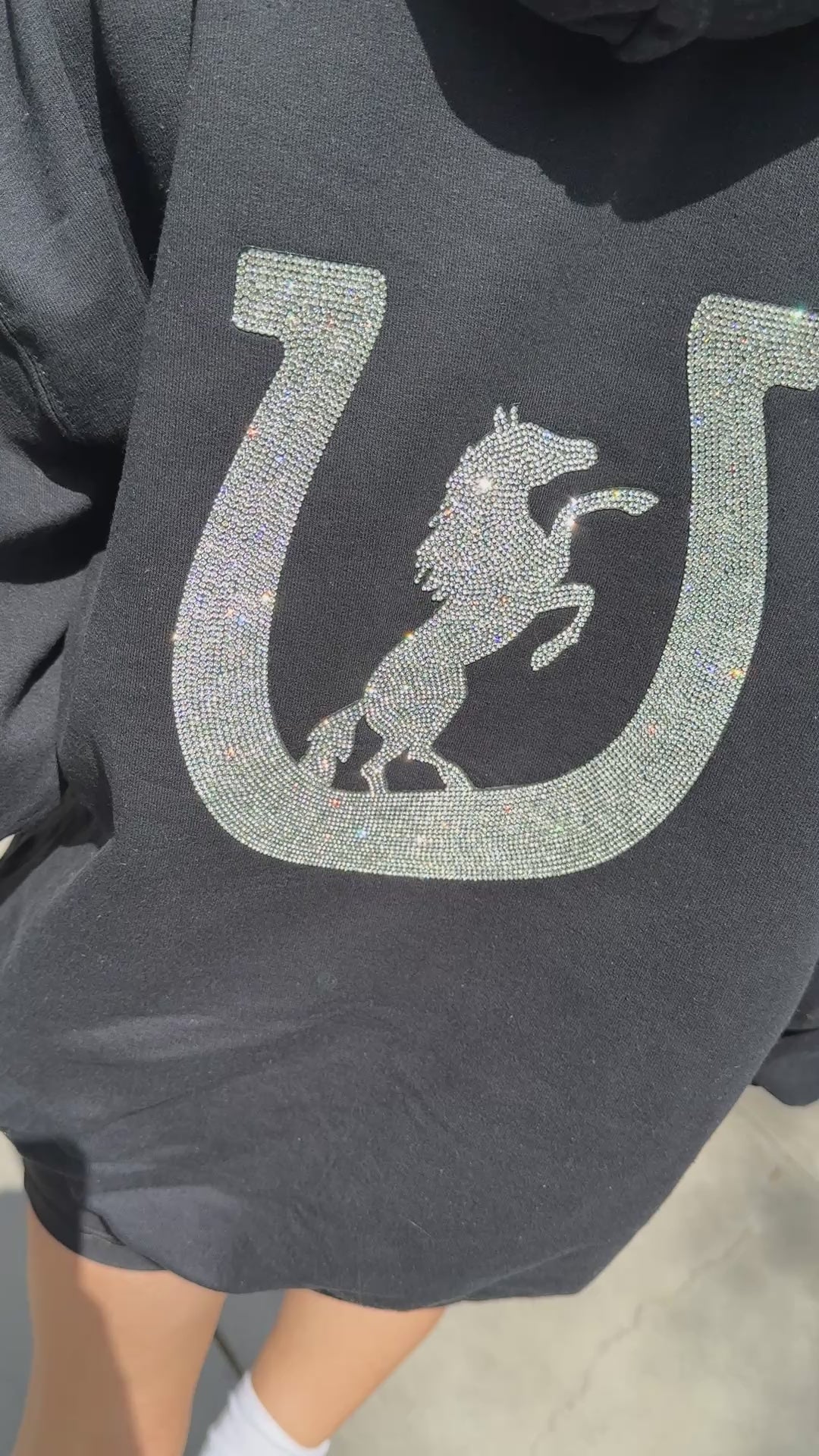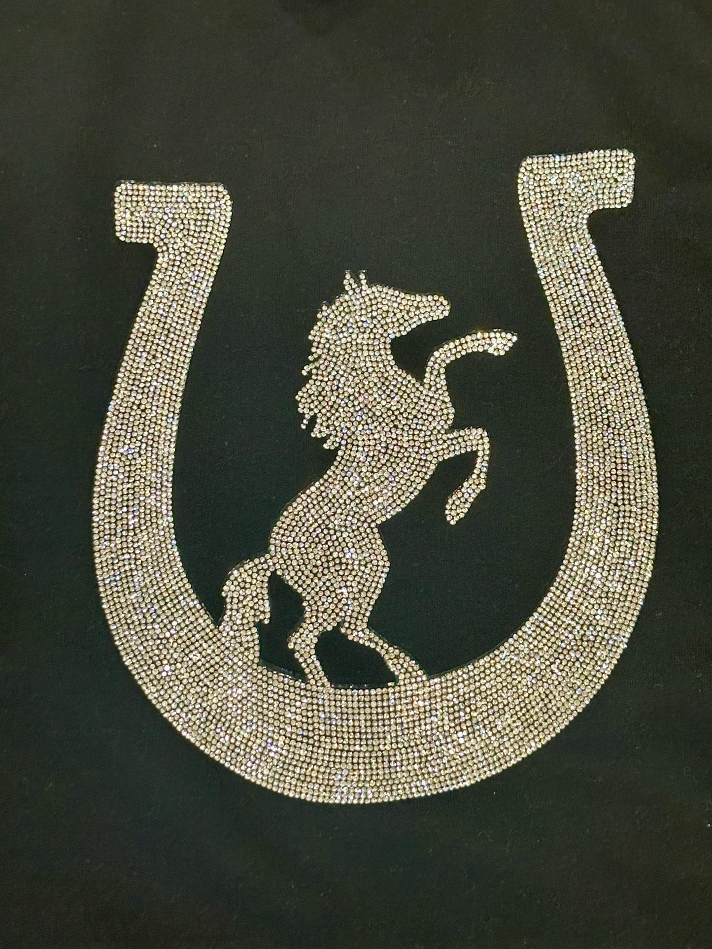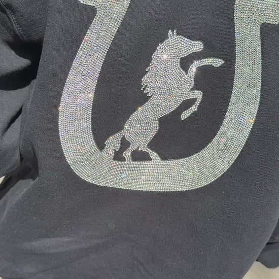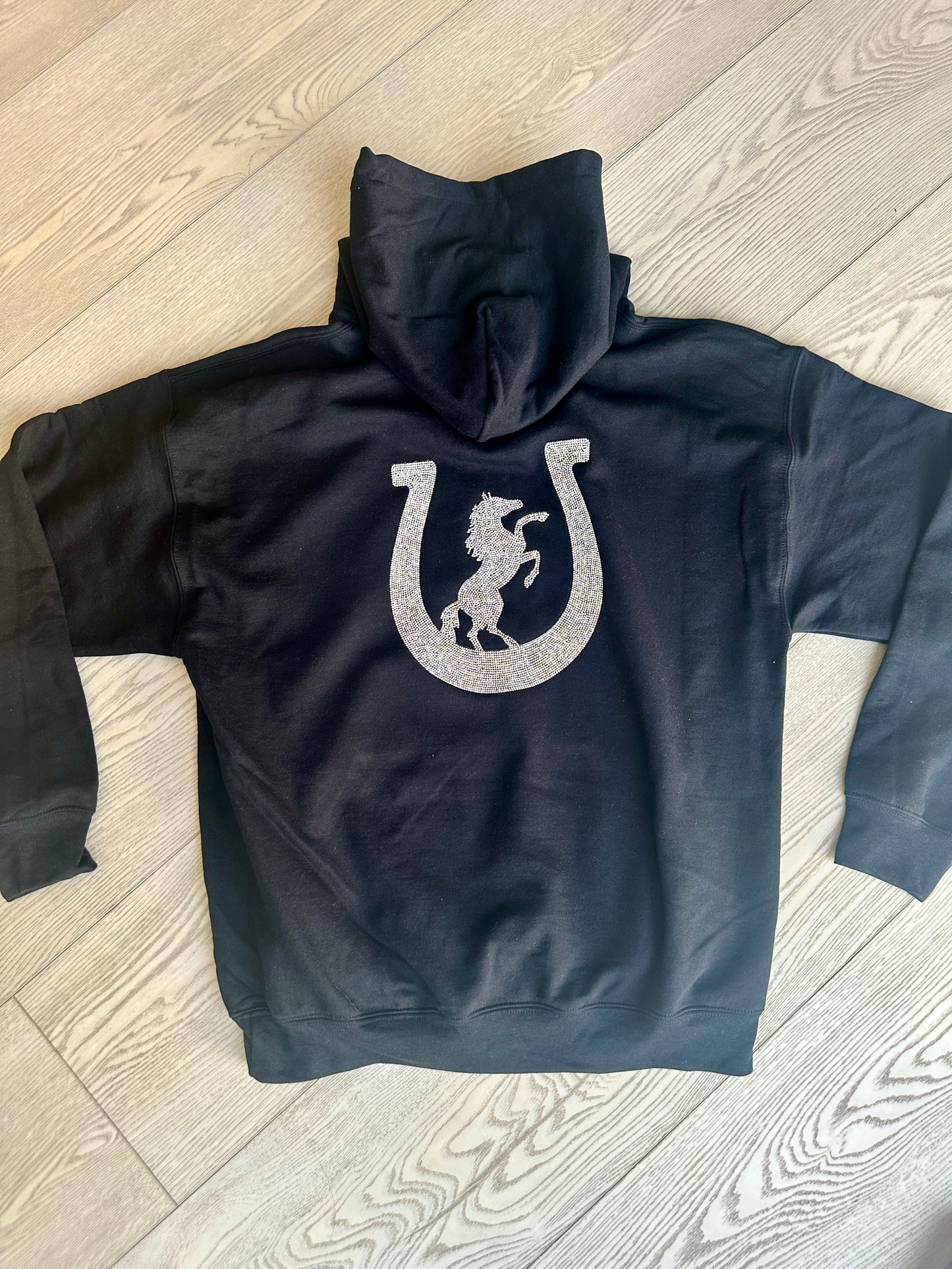 NEW!! Crystal Drawstring Sweatshirt w/ Horse Shoe in Black