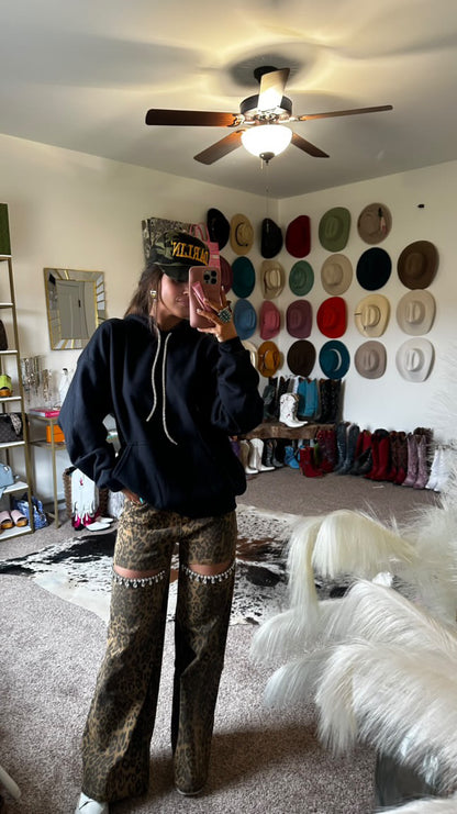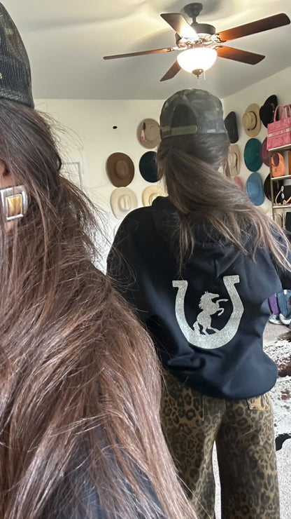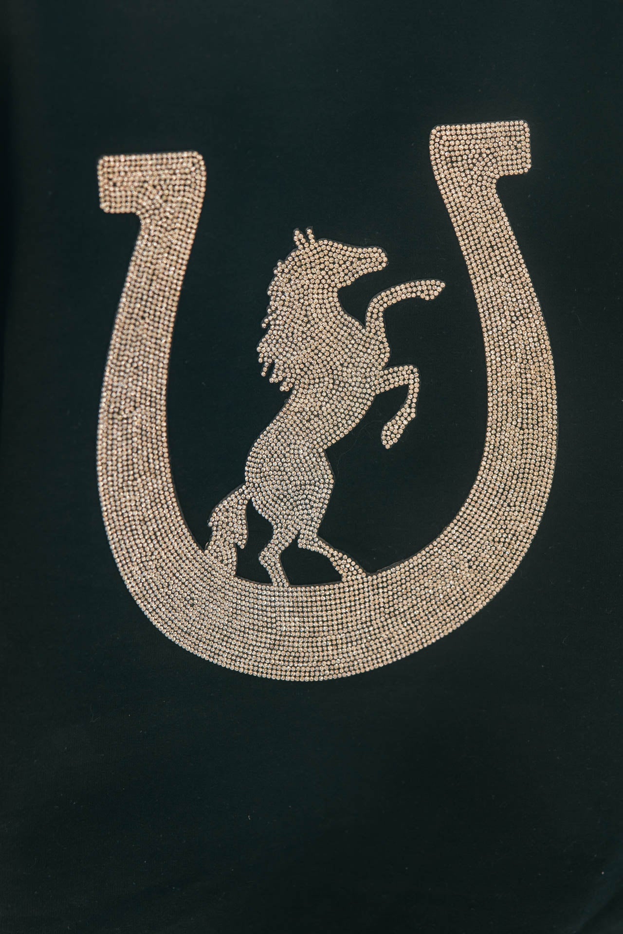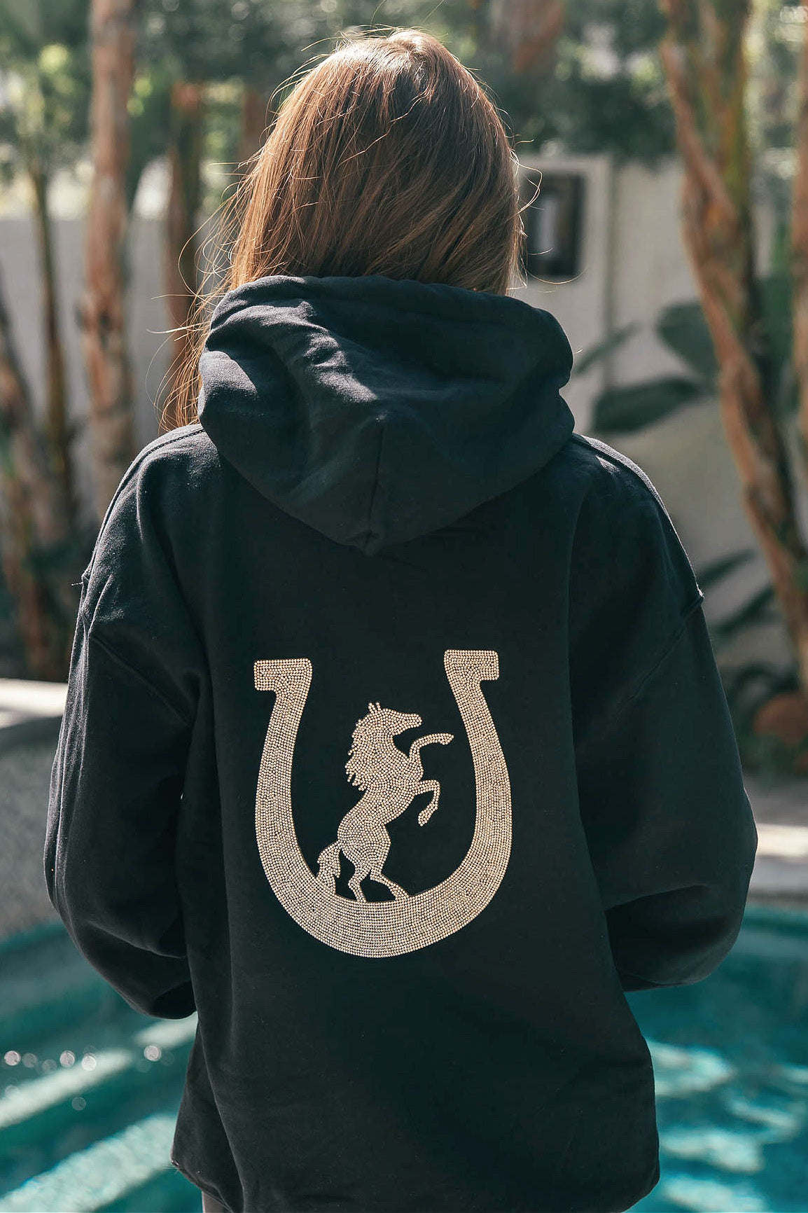 NEW!! Crystal Drawstring Sweatshirt w/ Horse Shoe in Black