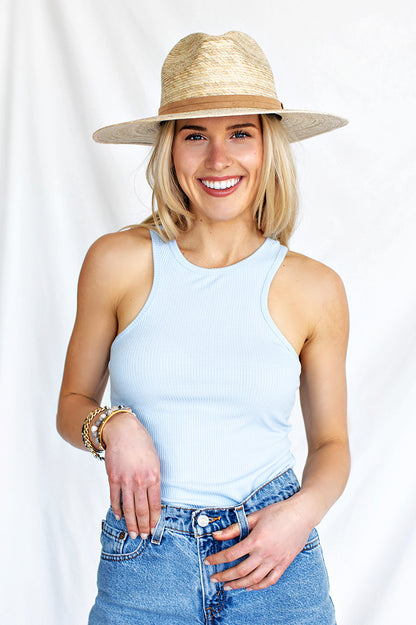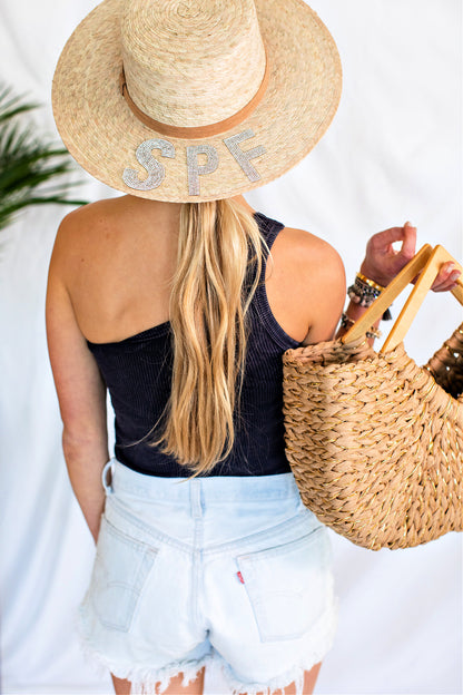 "SPF" Pressed Palm Straw Hat in 2 styles