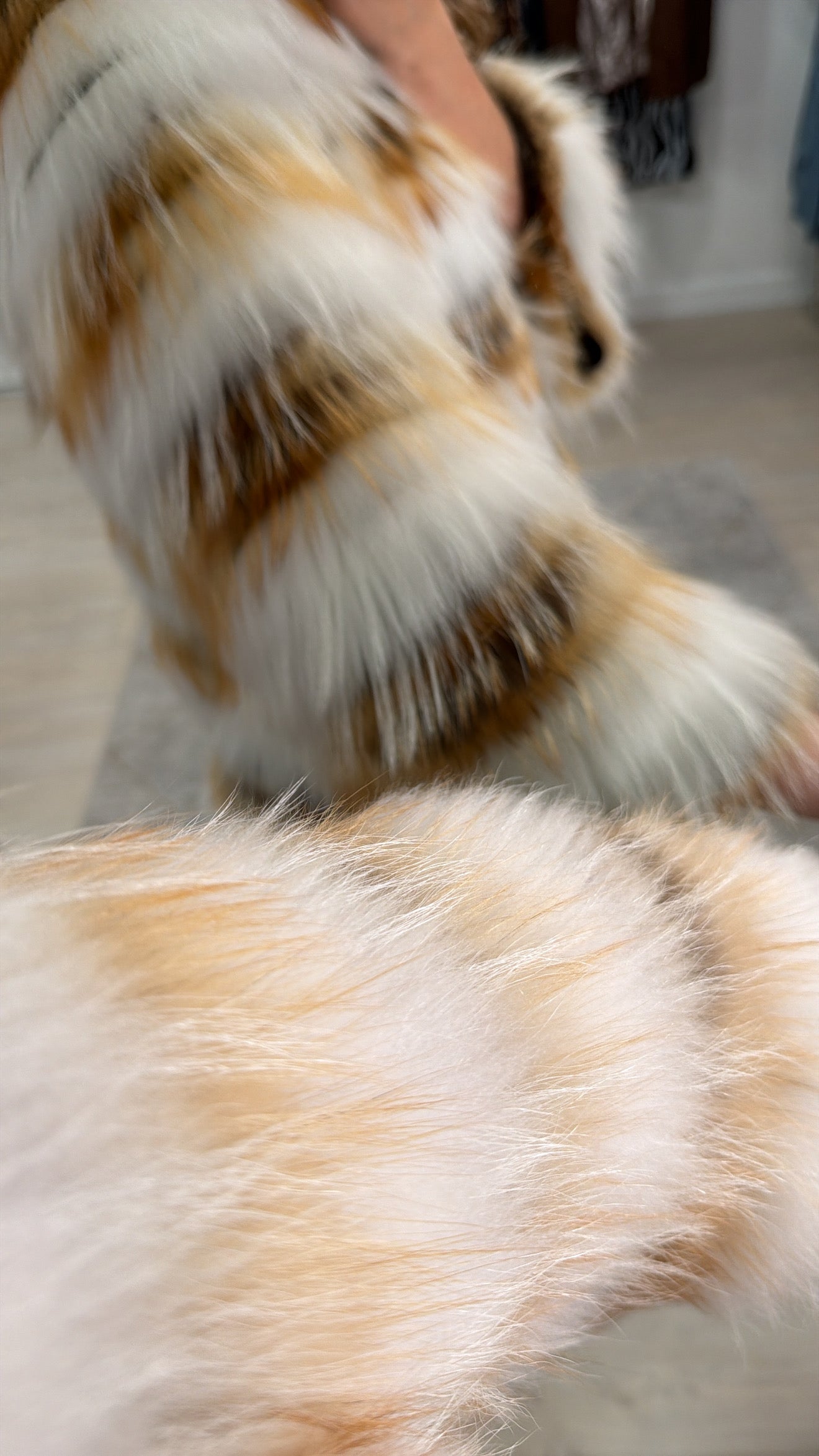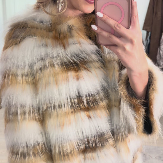 #GB9 Vintage Feathered Fox Fur 3/4 Sleeve Jacket