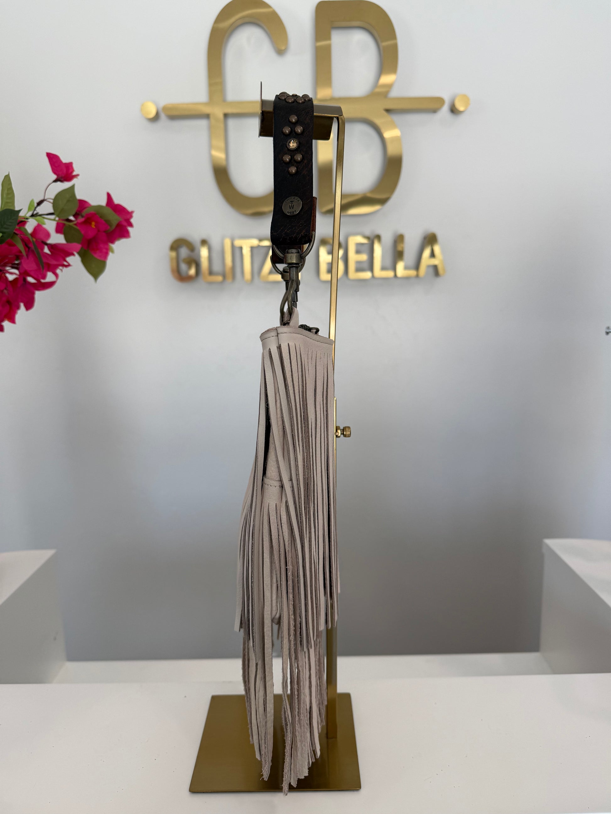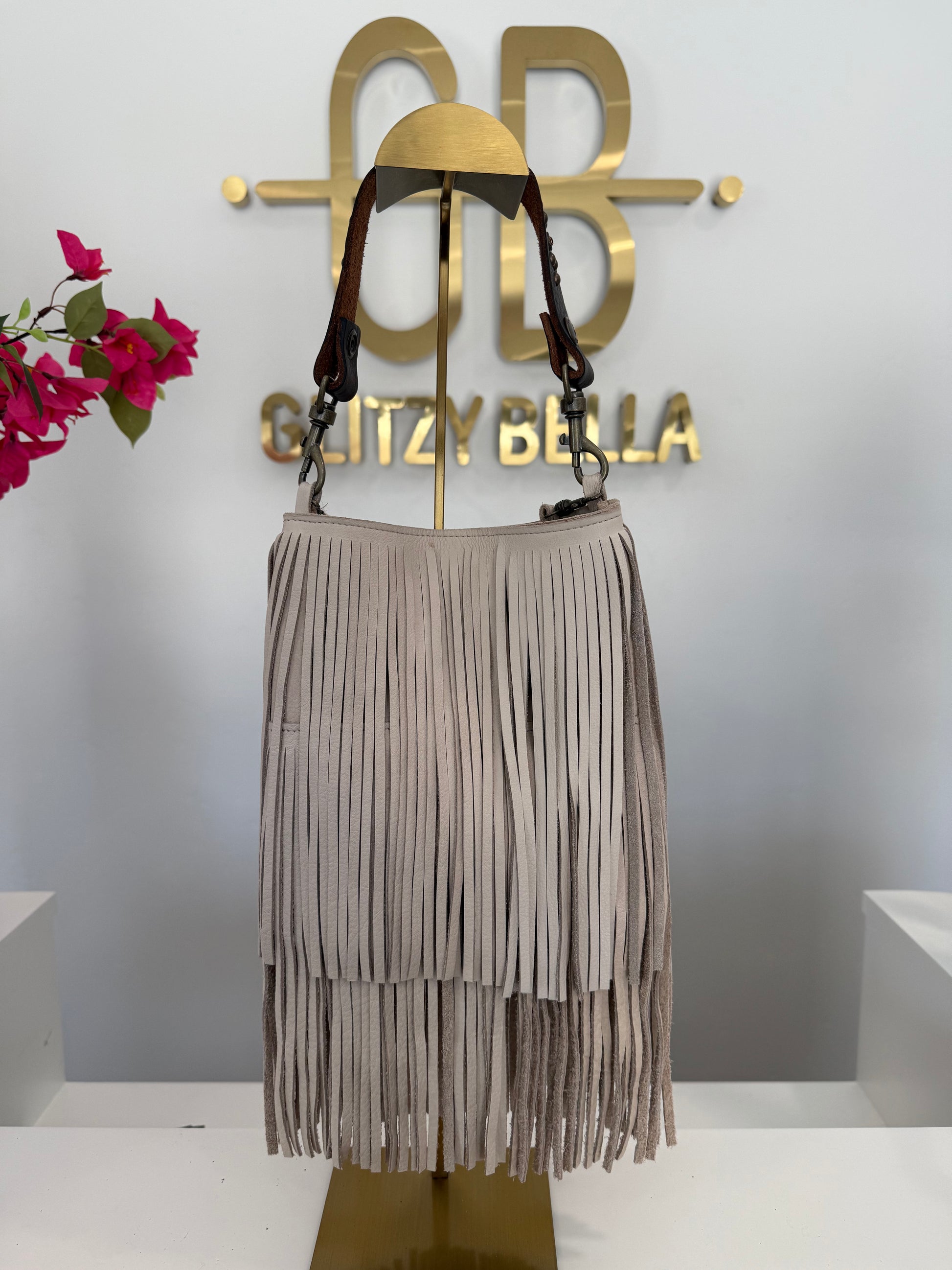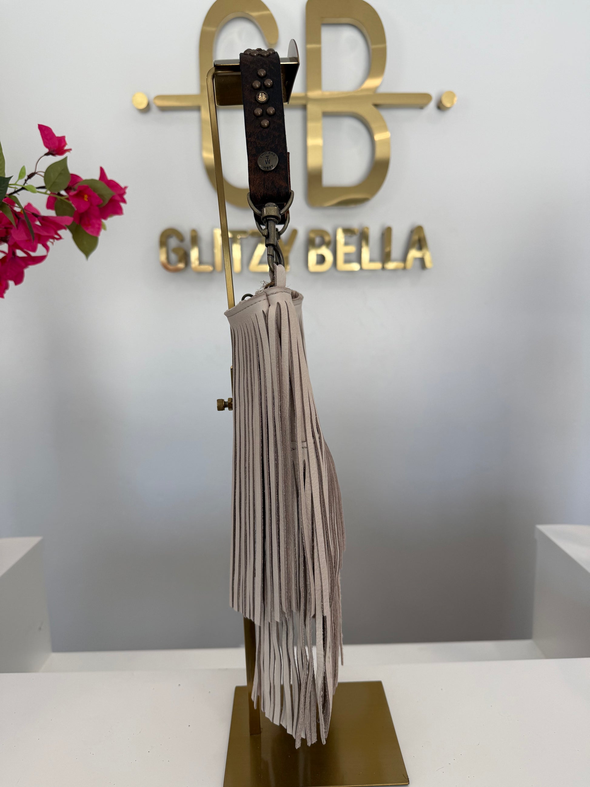 Ivory Fringe Crossbody w/ Brown Strap