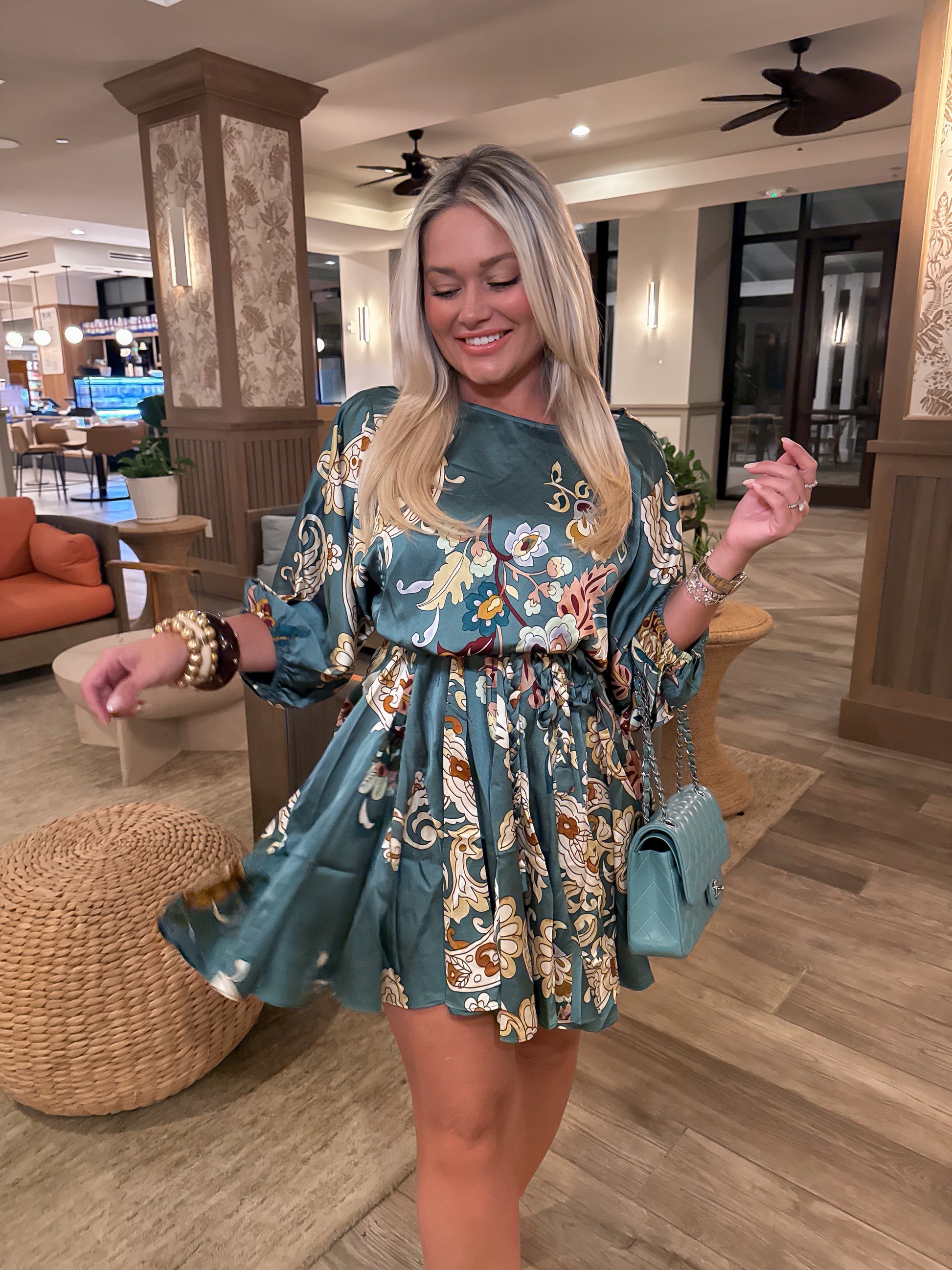 Step into fall mode with the new Abstract Waist Tie Mini Dress. Made from lightweight fabric, this dress is your perfect companion for family photos, Sunday Church, and breezy evenings. The waist tie detail adds a flattering touch, while blouson sleeves with elastic cuffs bring a soft, romantic vibe.