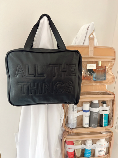 Meet your new travel BFF: the All The Things Leather Hanging Travel Bag! This playful, roomy bag keeps all your essentials organized and ready to go. Hang it anywhere—bathroom hook, closet rod, or even a tree branch—and find everything at a glance. Crafted from supple leather, it’s perfect for jet-setters who want style and convenience in one. Pack it, hang it, love it!