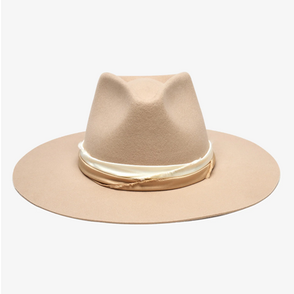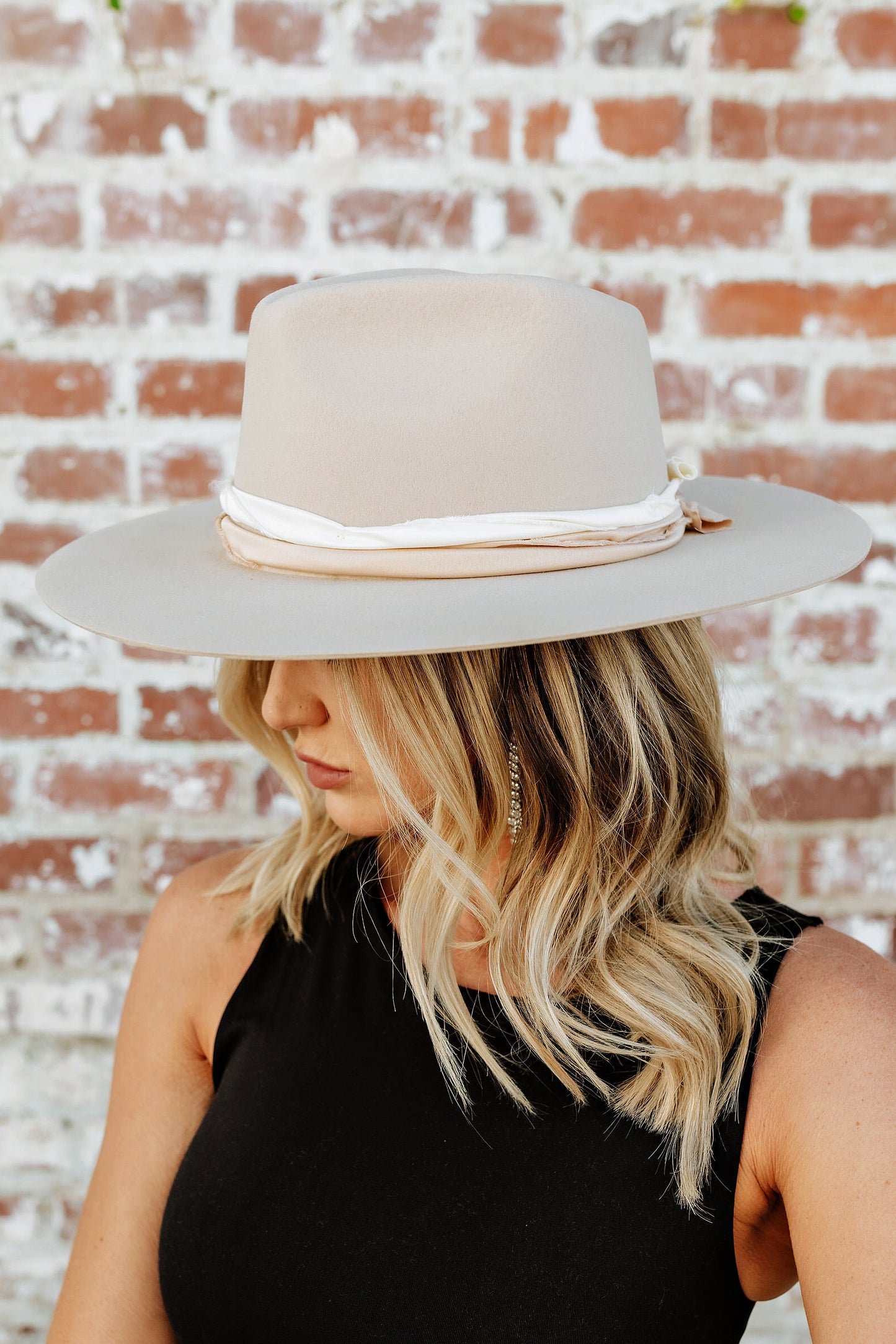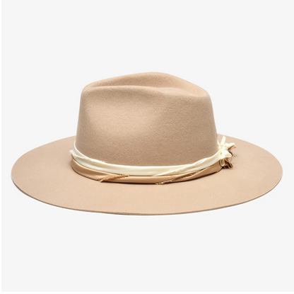Could this hat be anymore dreamy? The Austin is made of Australian cashmere wool hard brim hat with silk tie trim and the sweetest surpise embroidered accent on the back.