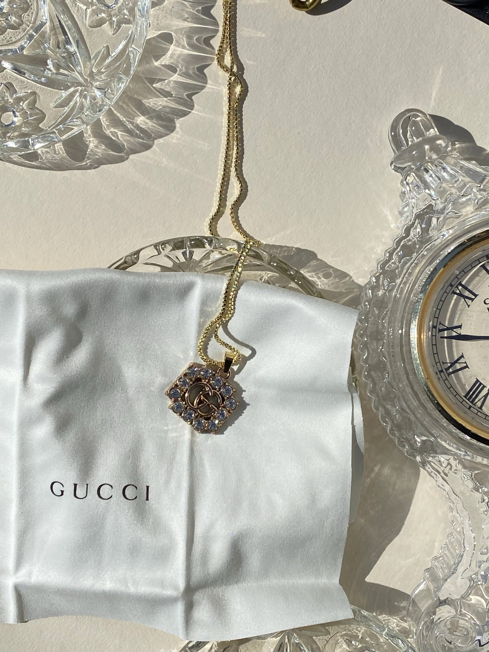 You’re looking at a piece we’ll probably never find again. This vintage Gucci pendant was sourced from a rare drop and repurposed onto a non-tarnish 18k gold-filled chain that levels up everything.
