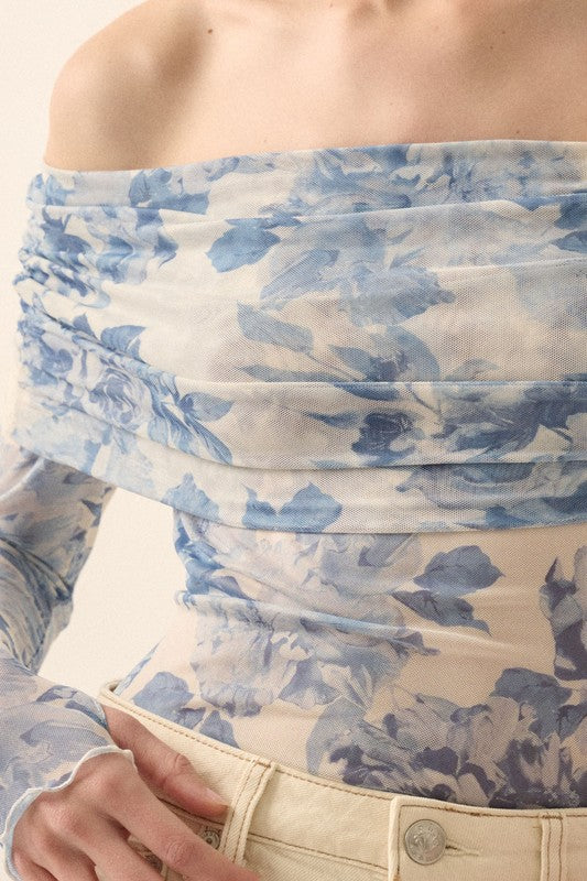 NEW!! Blue Rose Mesh Off the Shoulder Bodysuit